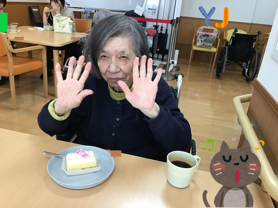 このあと、ご入居者様と職員とでバースデーソングを歌ったら...