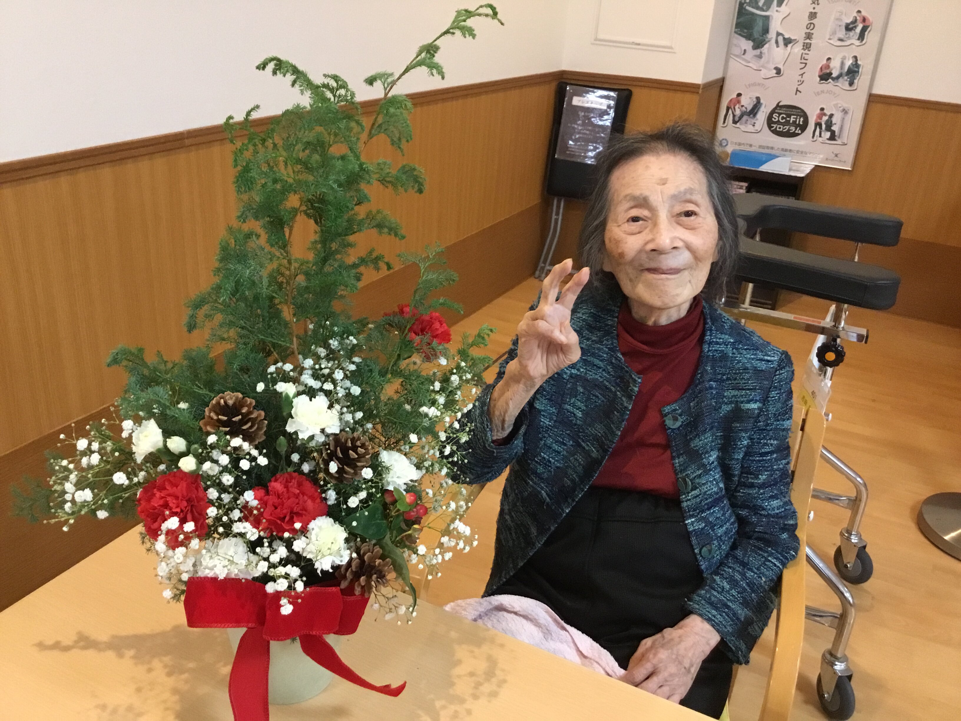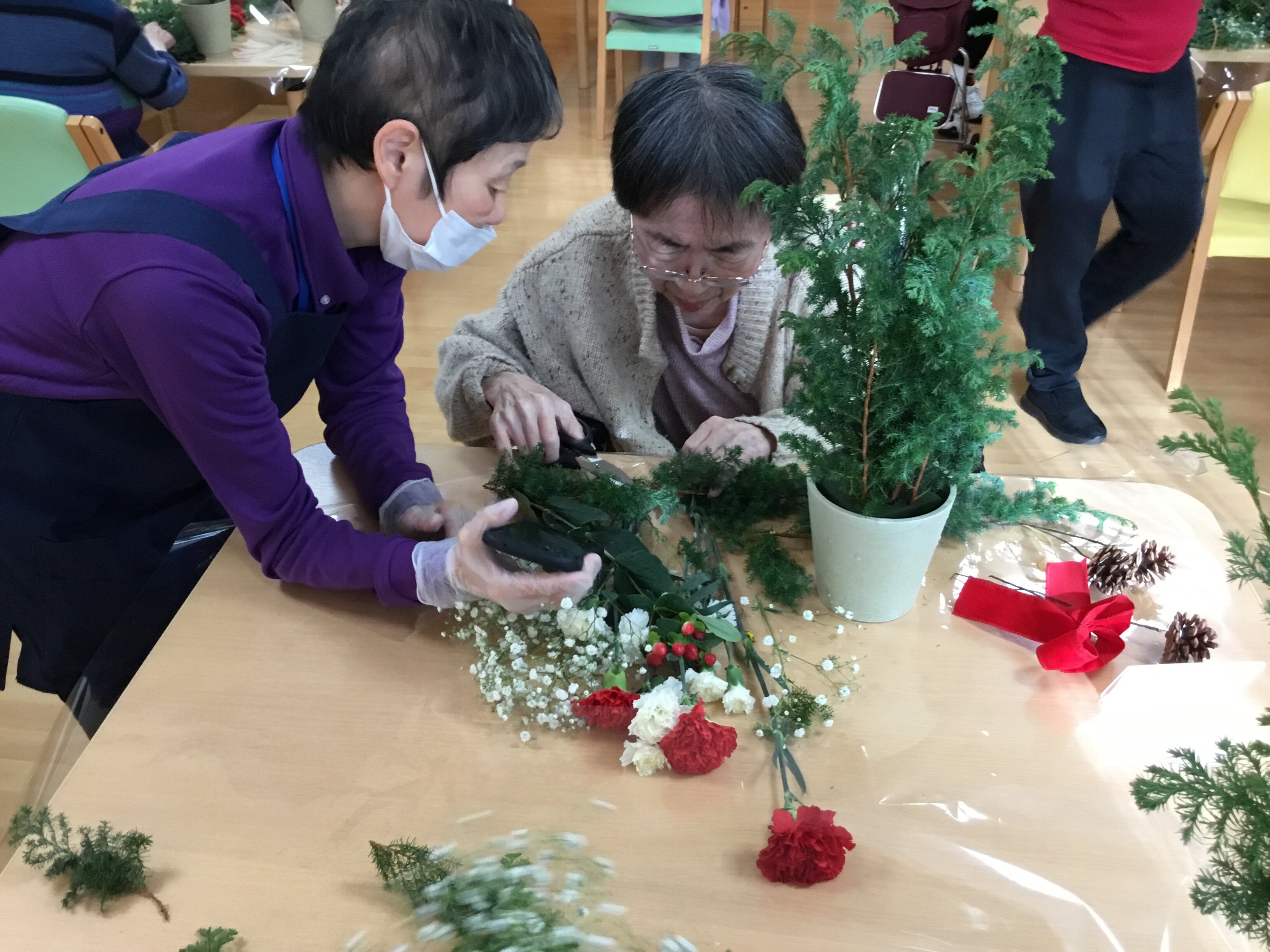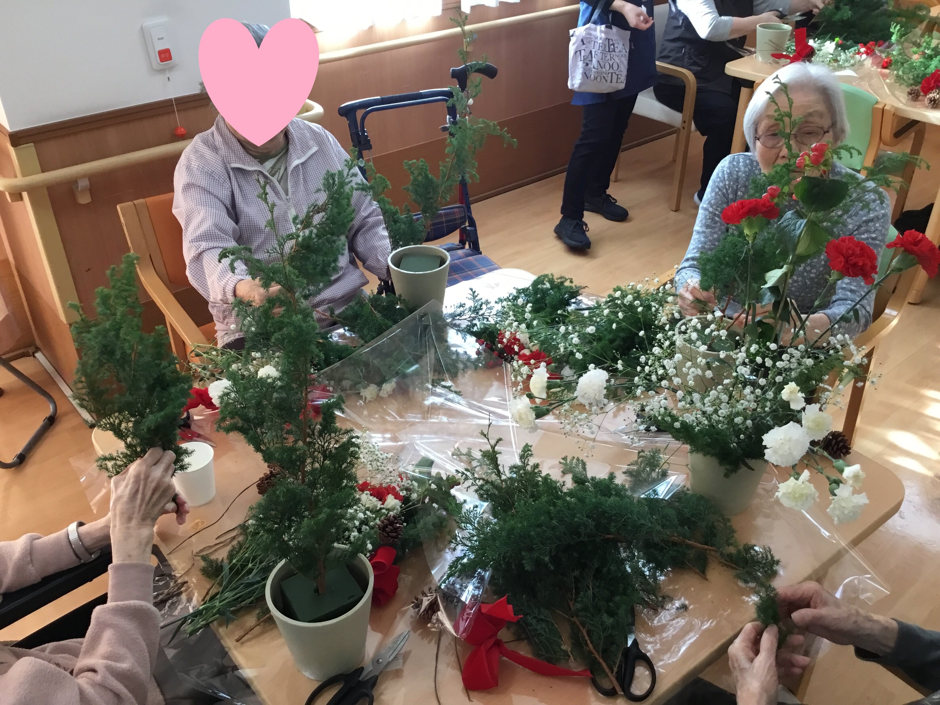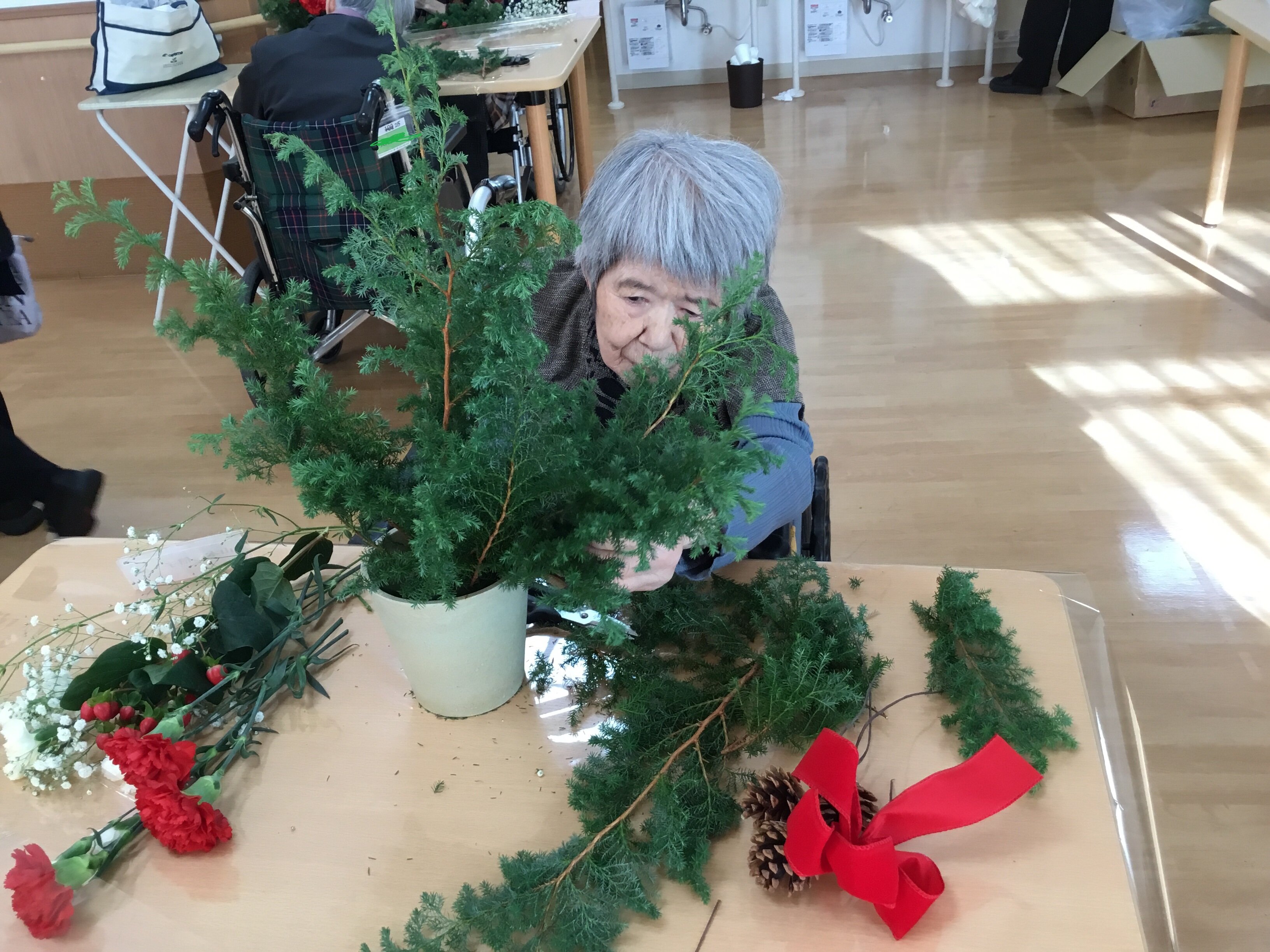 ご入居者様にお手伝いいただき、キラキラと綺麗に飾っていただきました(∩´∀`)∩