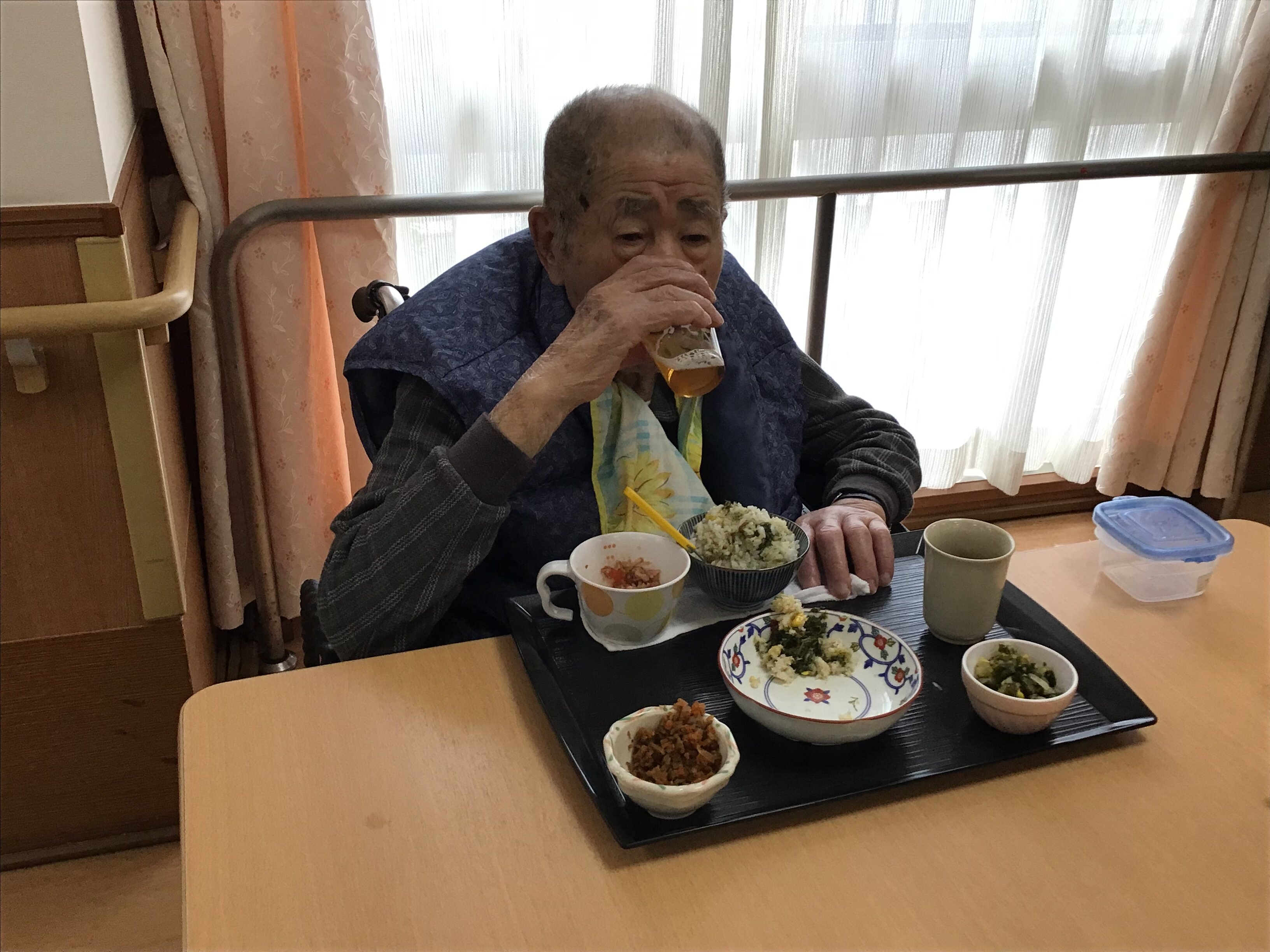 こちらのご入居者様は水分制限があるため少しの量での提供になったのですが、