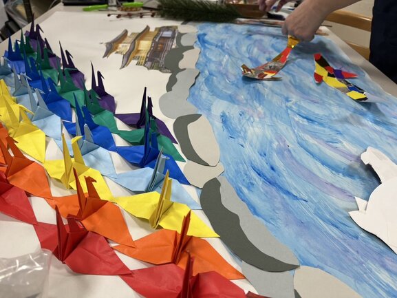 ちぎり絵で作成した鯉がいっぱい(*^_^*)