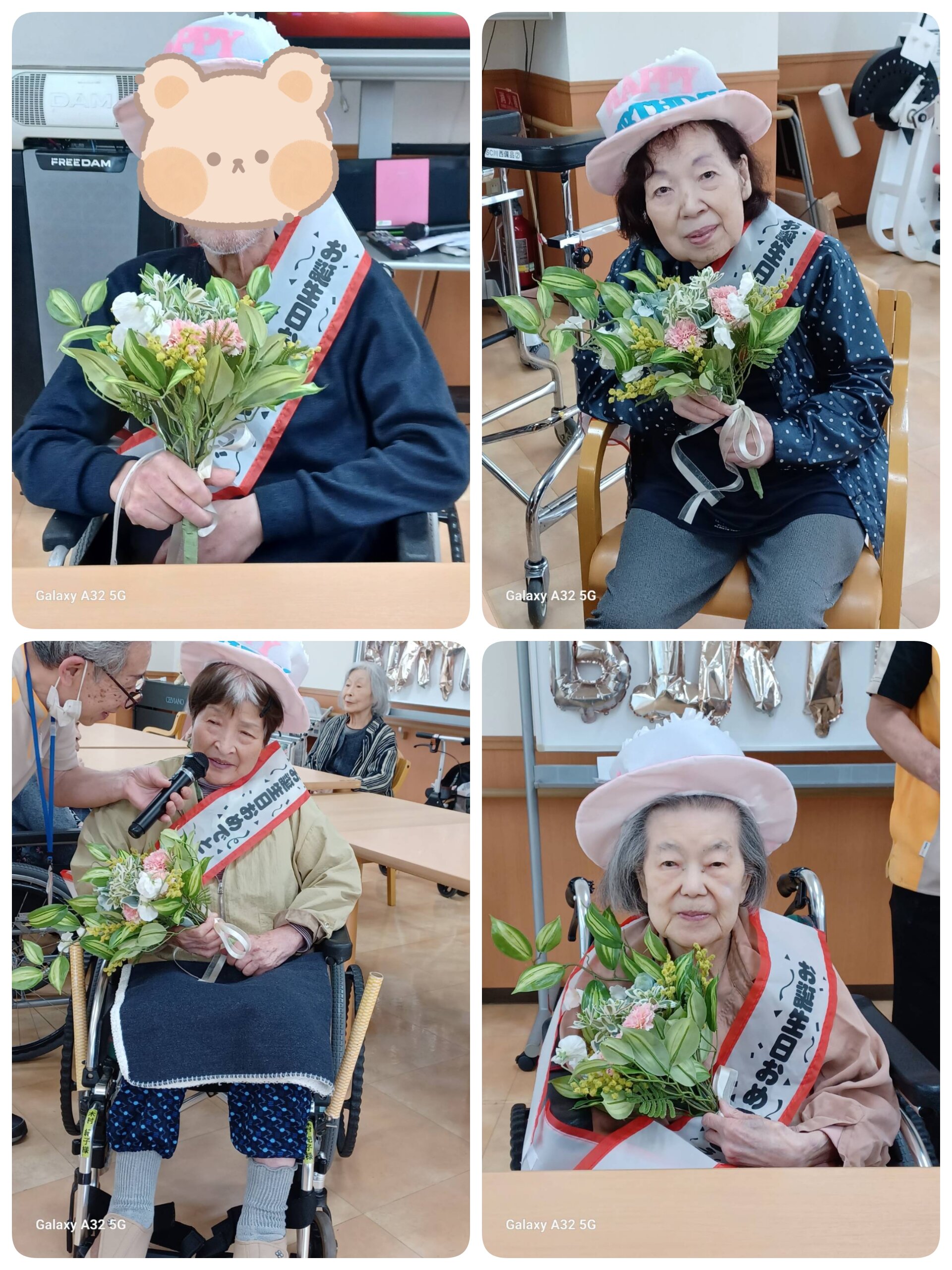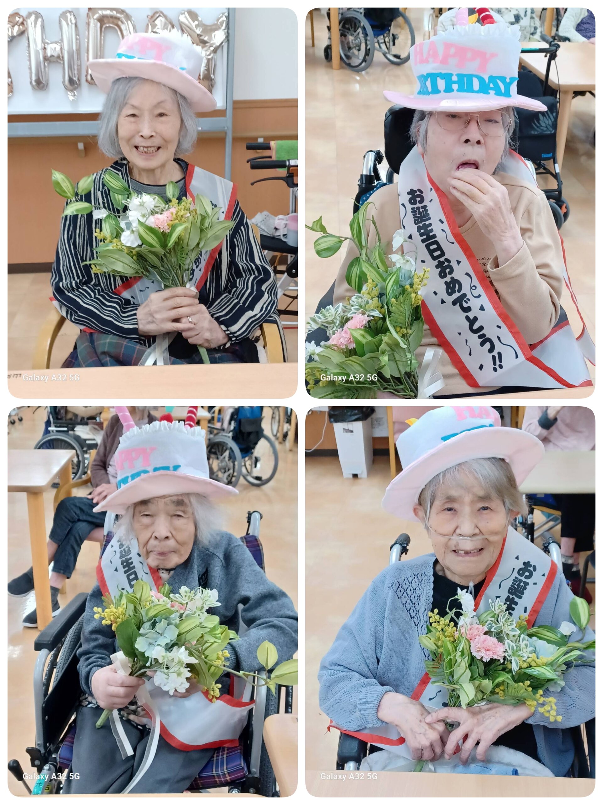 会場は「HAPPY BIRTHDAY」の飾り付けで華やかに彩られ、主役の皆さまにはお祝いのタスキと主役専用の帽子を身につけていただきました。