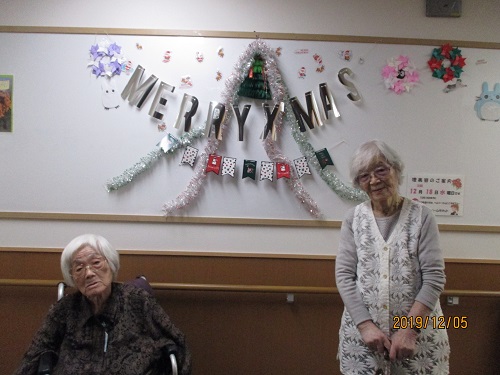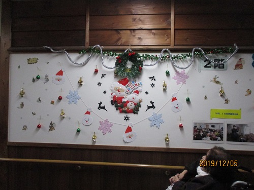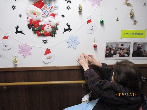 クリスマスの飾りつけがきれいですね。ご入居者様が興味を持たれているようで良いですね。