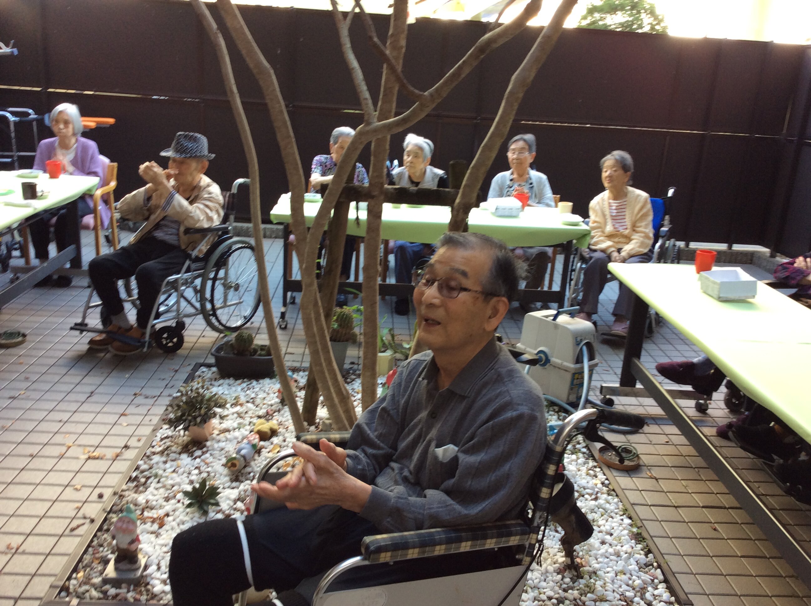 あるスタッフが「天気良いので中庭でカラオケしたいですね。」