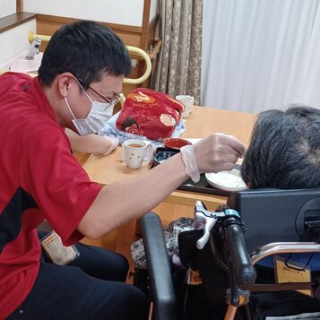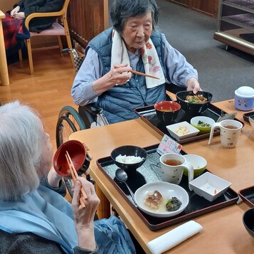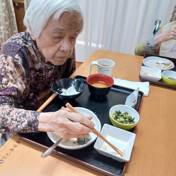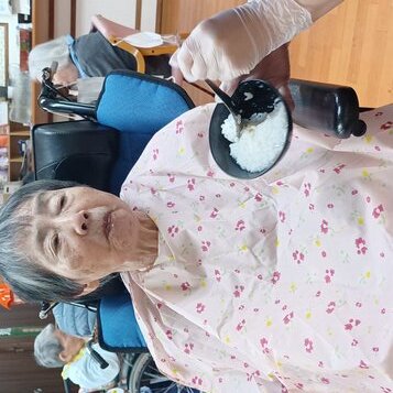 食事の時間は、いつも機能訓練指導員の篠ちゃんがサポートをしてくださいます。