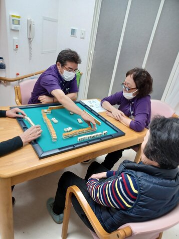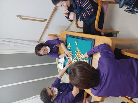 施設でも麻雀が楽しめる環境、時間を作り、職員も参加して会話の場になります。