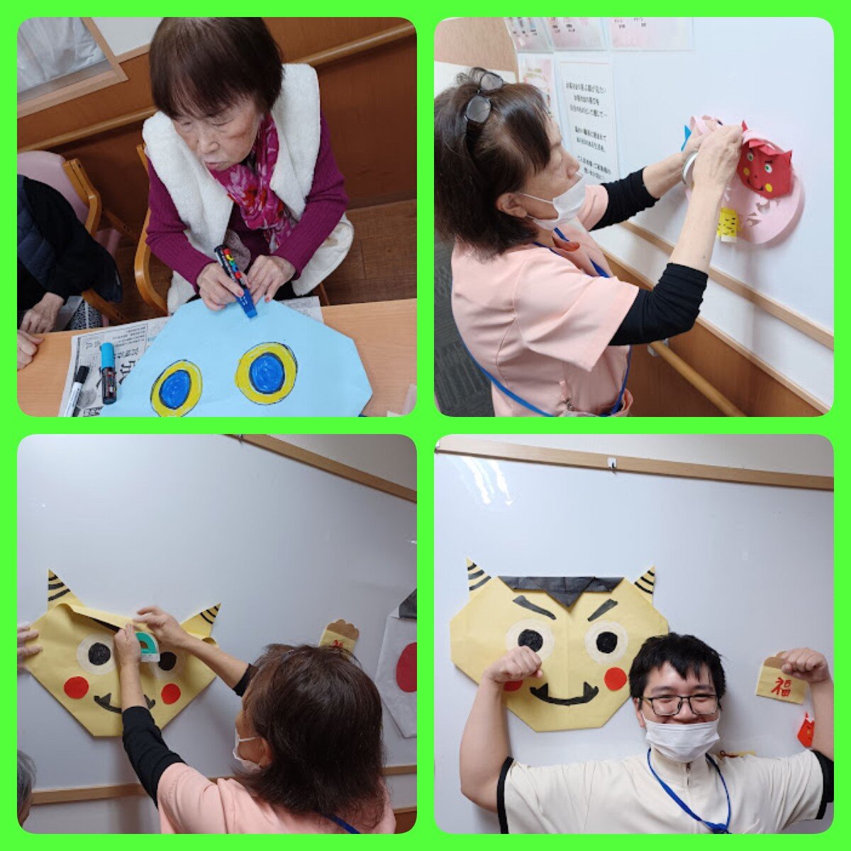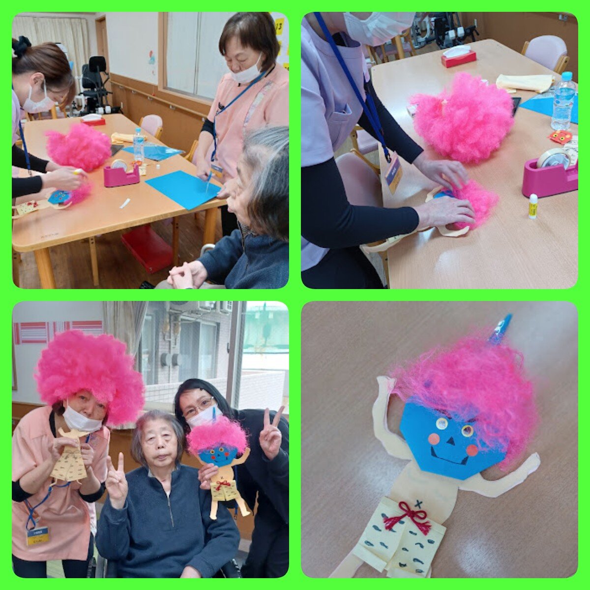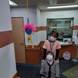 平野喜連事務所前でアフロヘアーの鬼さんが