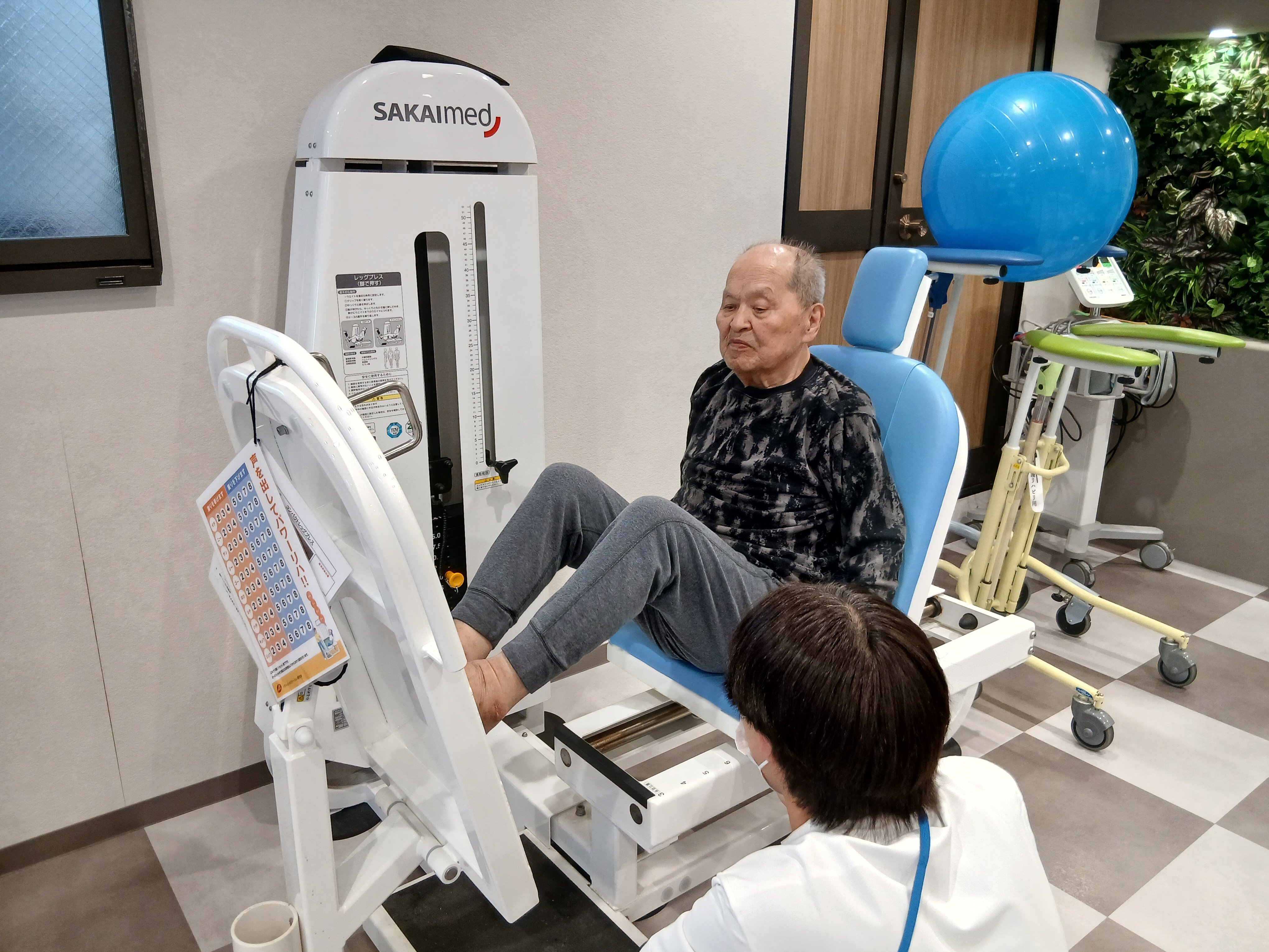 マッサージ、機能訓練機器を使用した下肢のトレーニングなど、