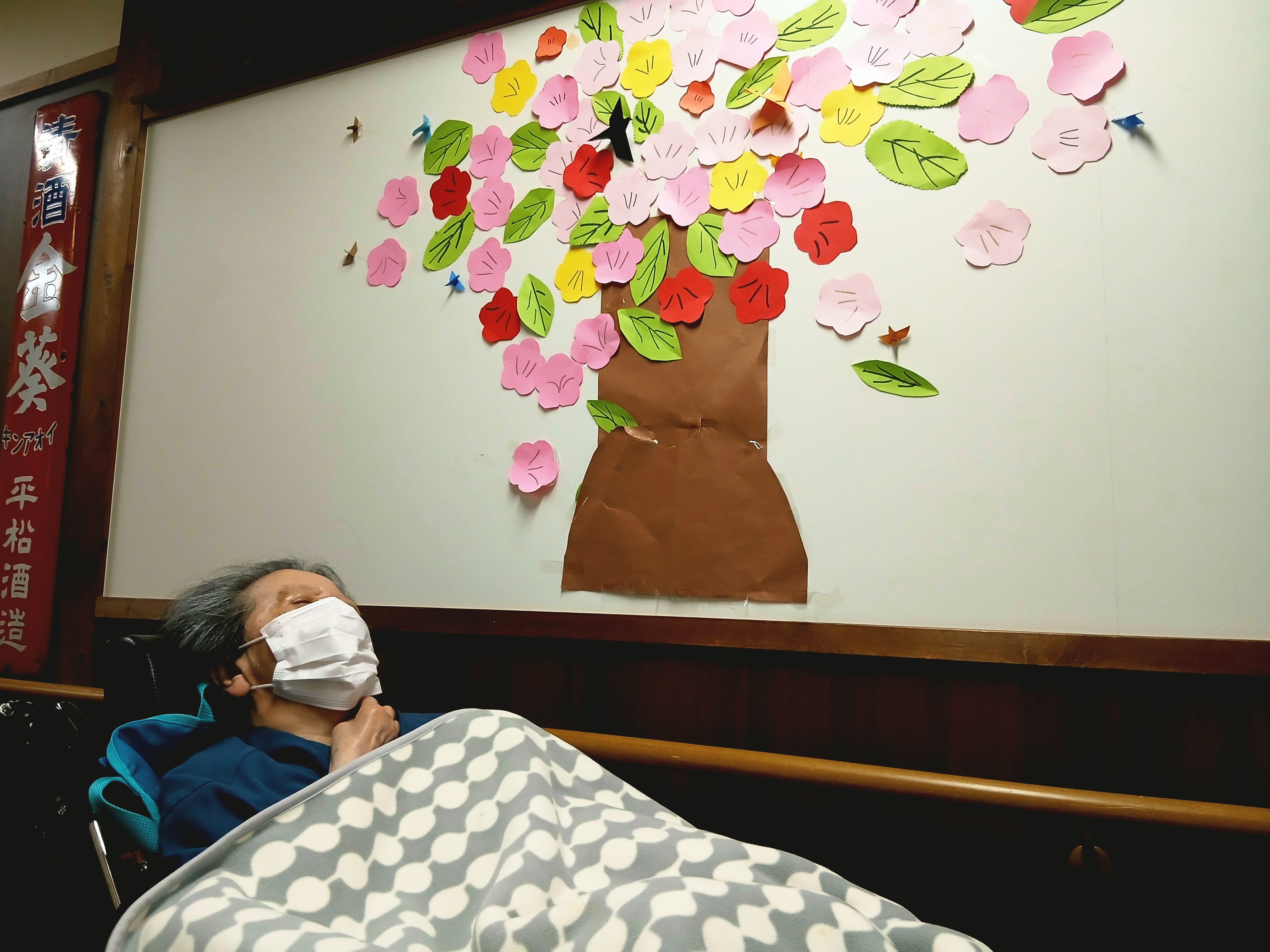 また、館内には春らしい壁画も飾られており、