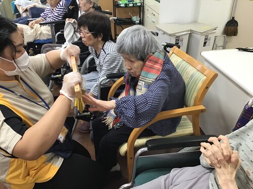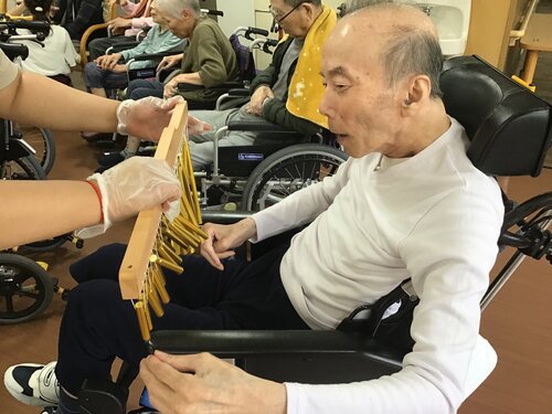 共同作業で、クリスマスの飾りの製作に取り組んでおられます。