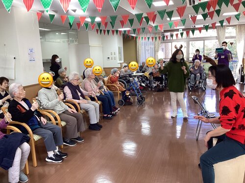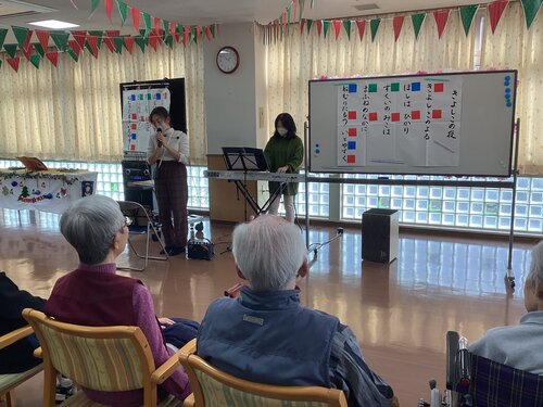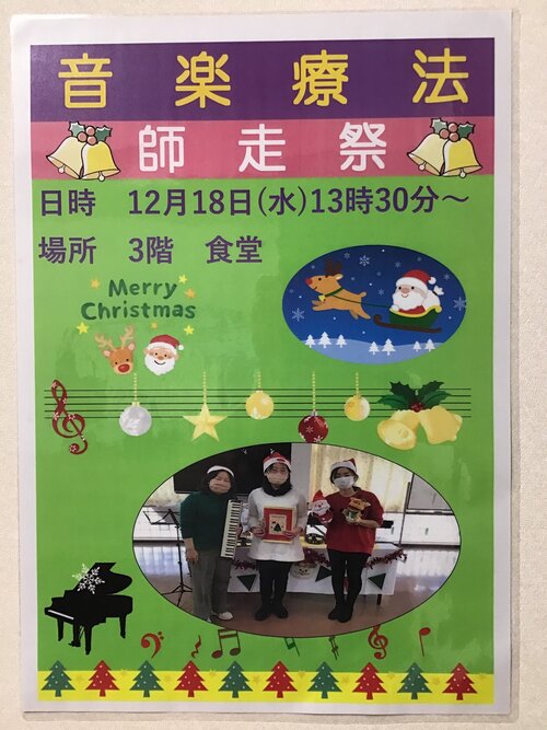 12月の音楽療法の様子です。クリスマス曲等もありとっても素敵な演奏会もありました。