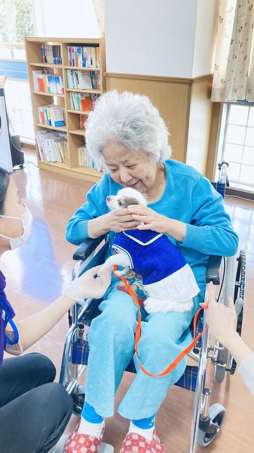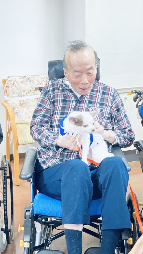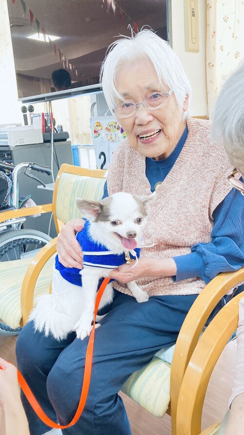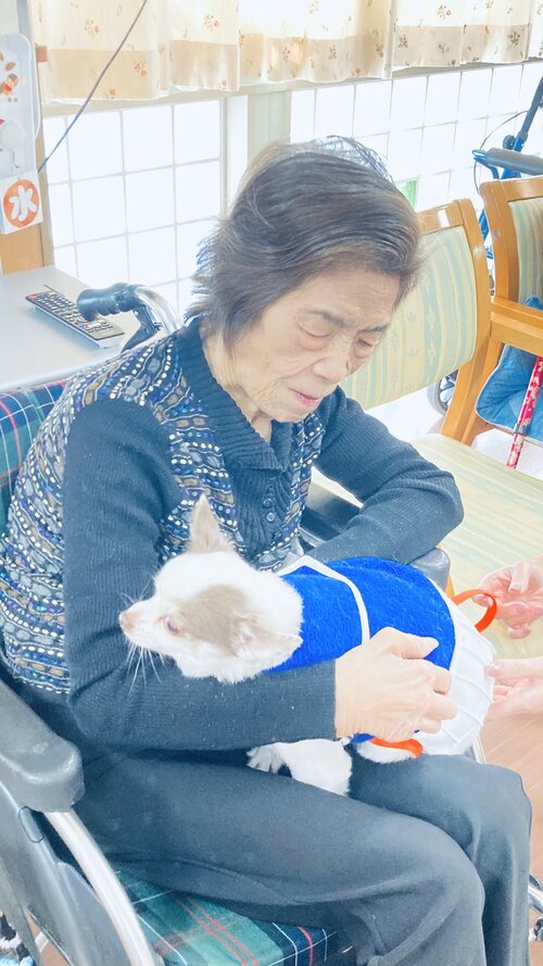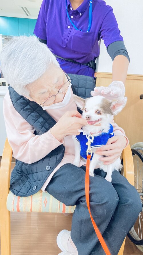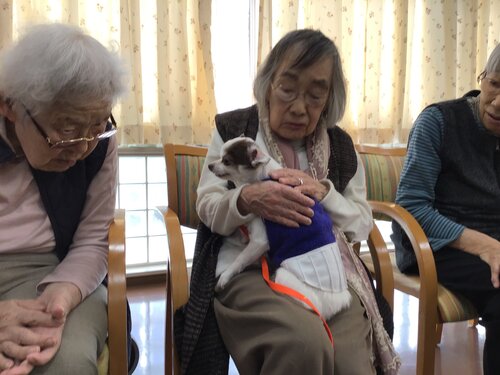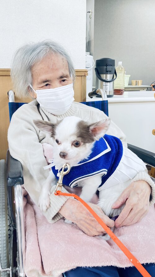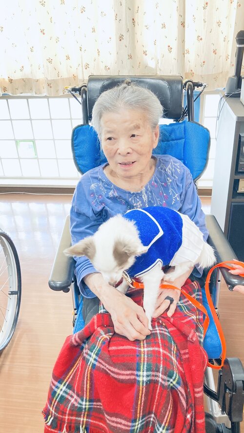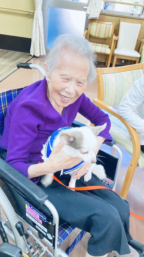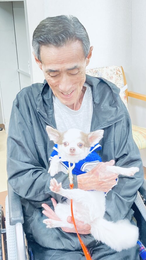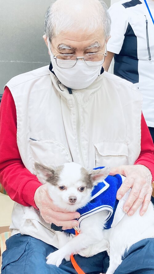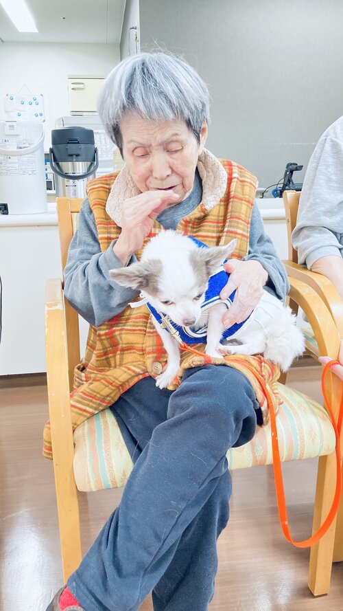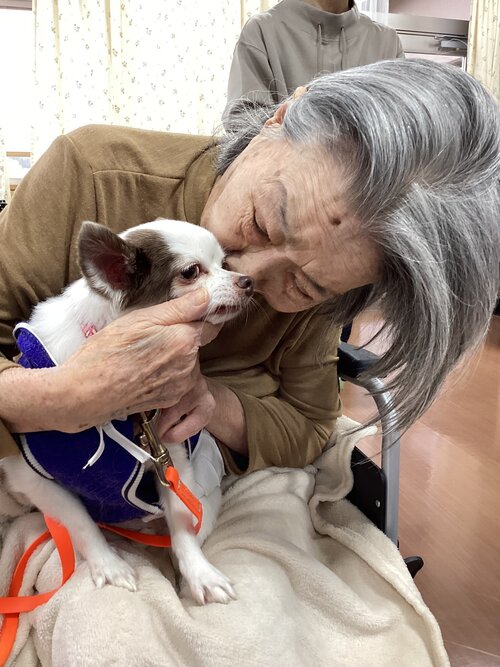 犬の温もりを感じてとっても良い表情をされておられました。。