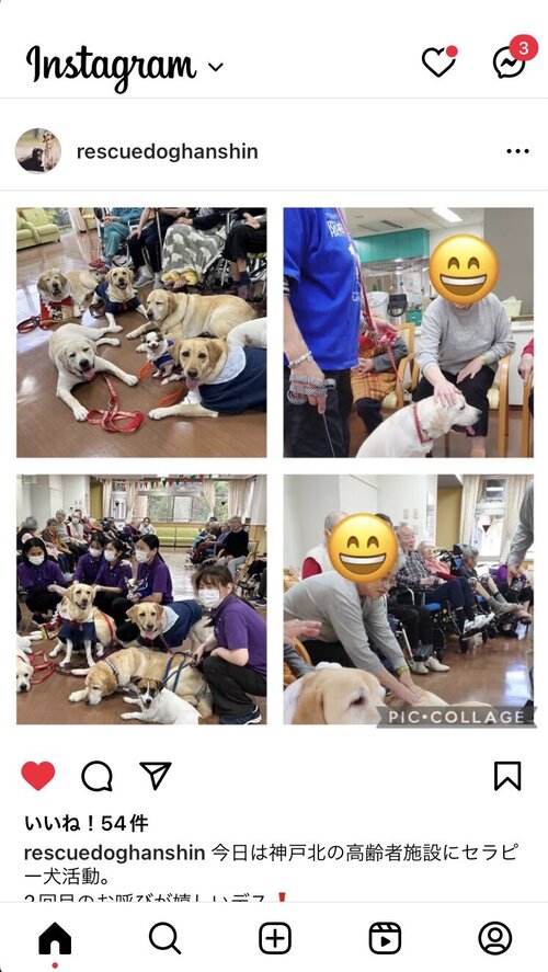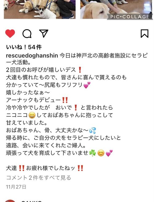 先日のドックセラピーの様子を阪神救助犬協会の方がInstagramで紹介して下さいましたよ。