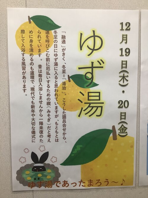 ゆず湯に入って、来年も元気に過ごしましょう。。