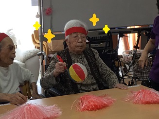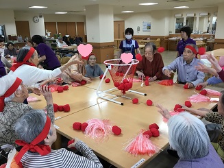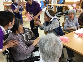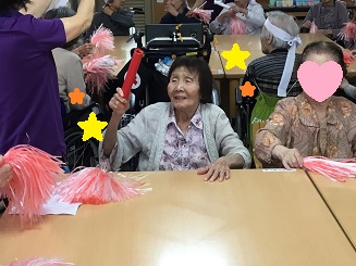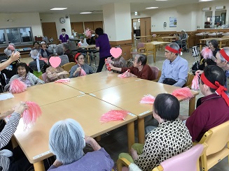 椅子に座ったままリレーのバトンを隣の人へ渡し