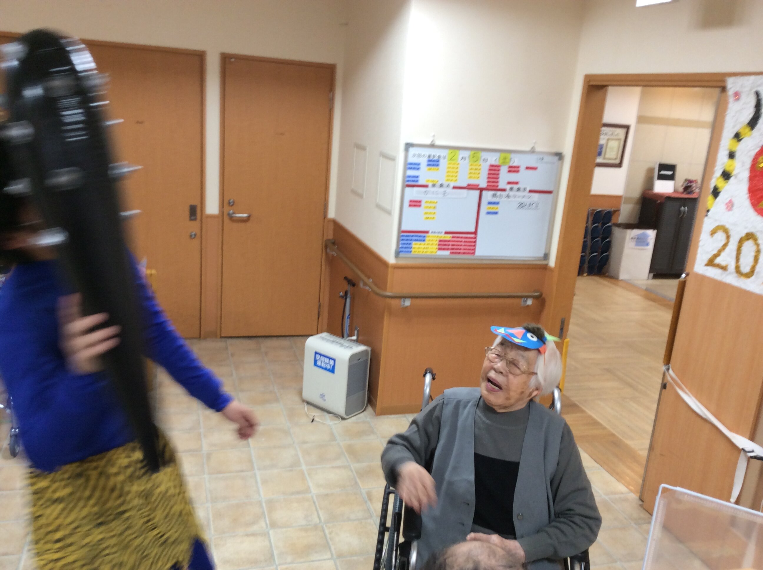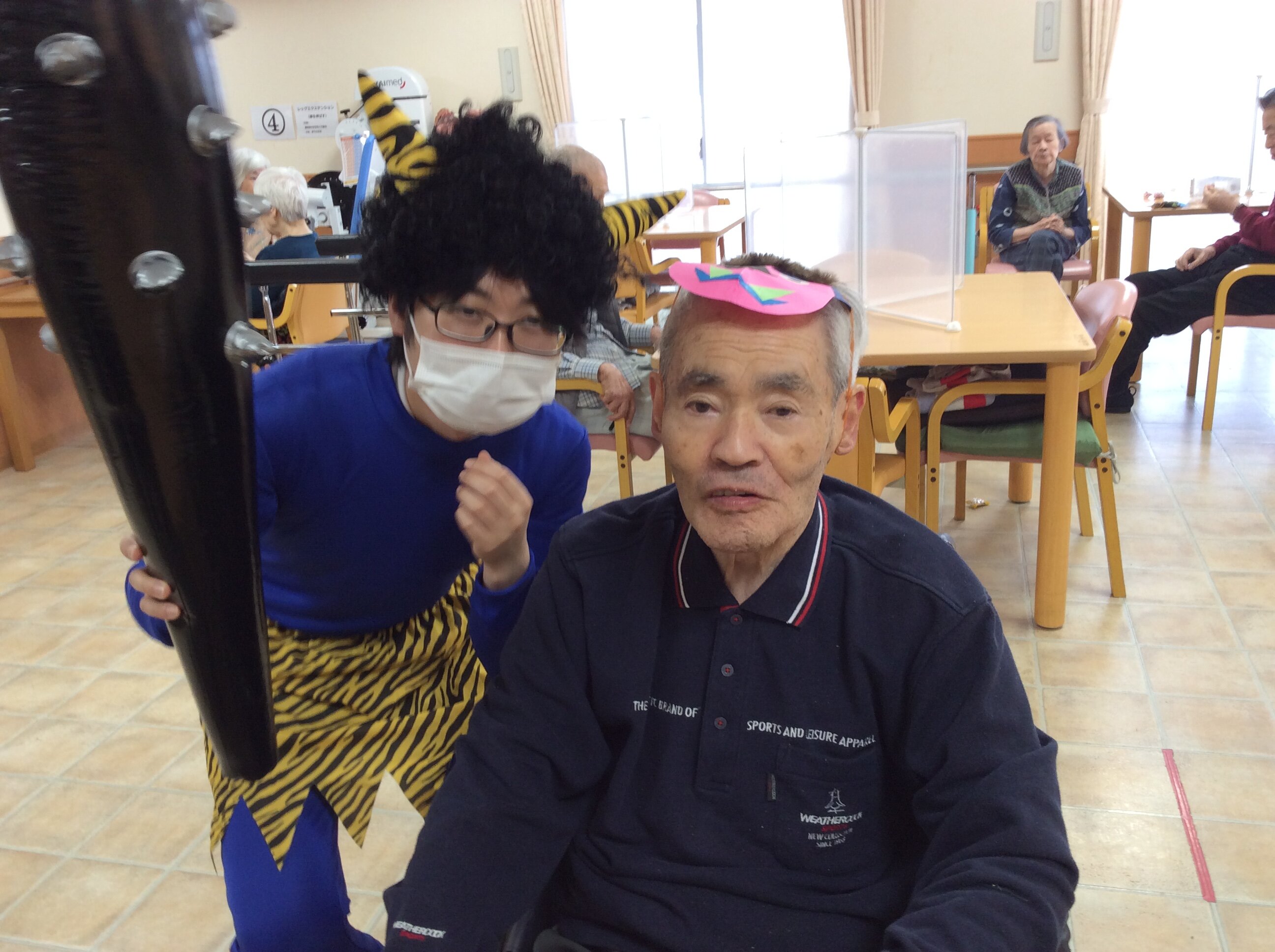 節分の行事が終わる前に利用者の皆様と仲良くツーショット!(笑)