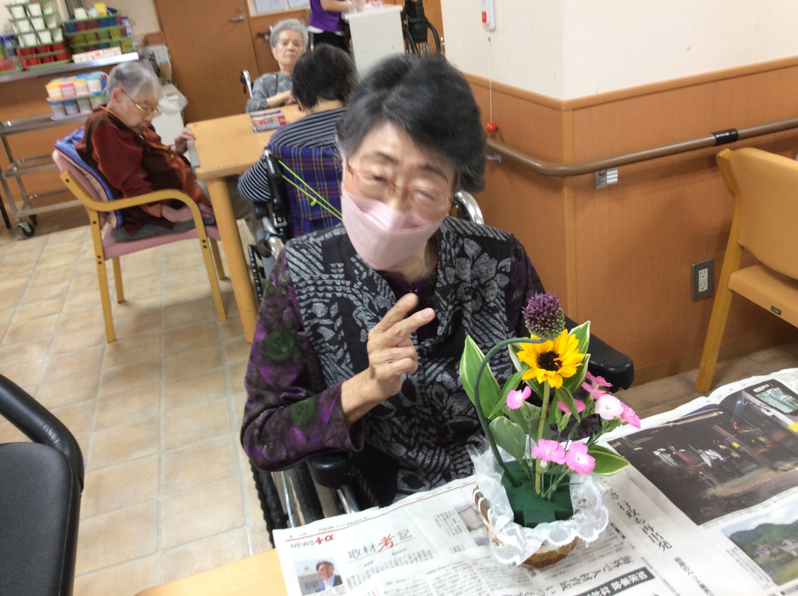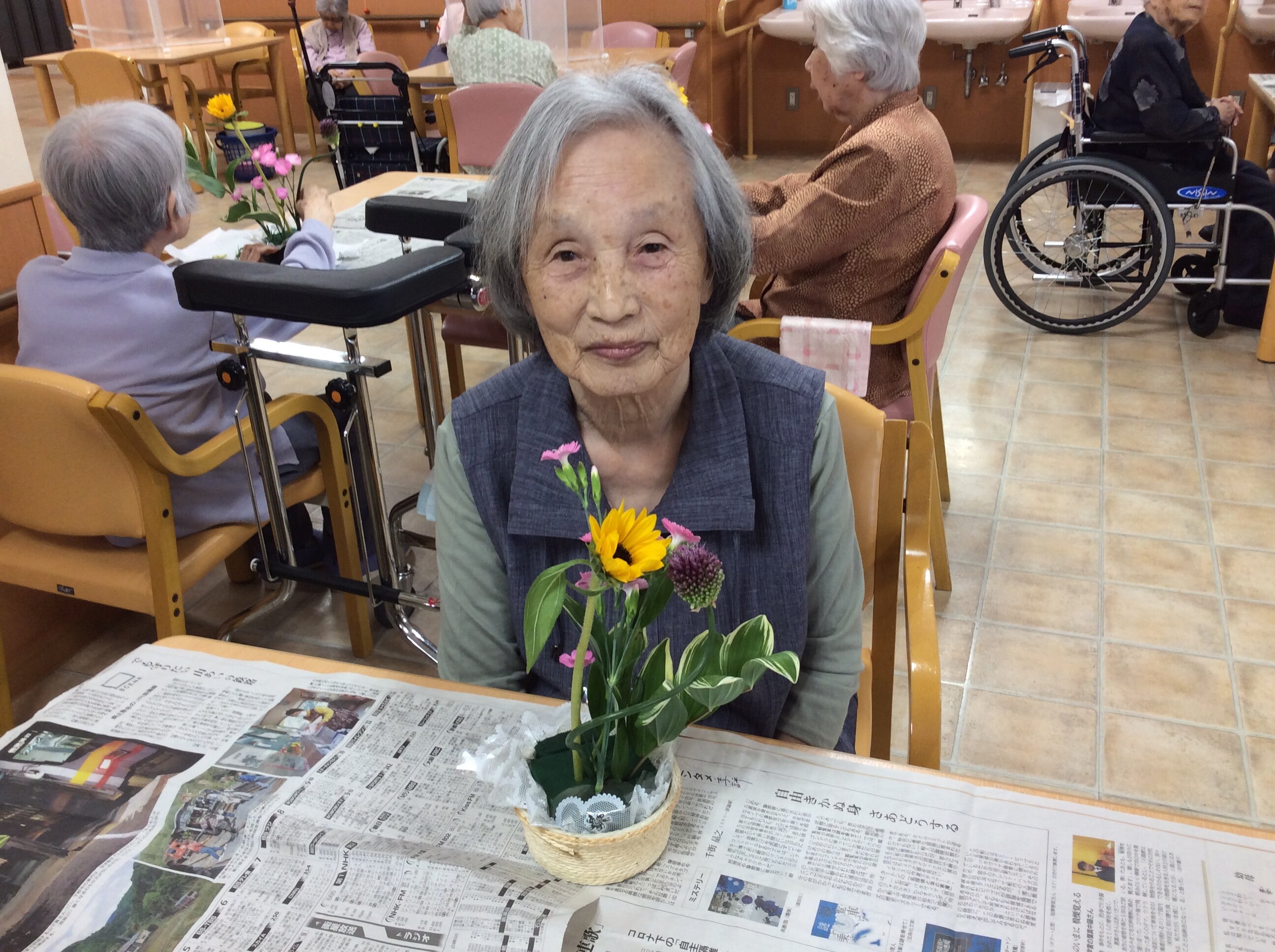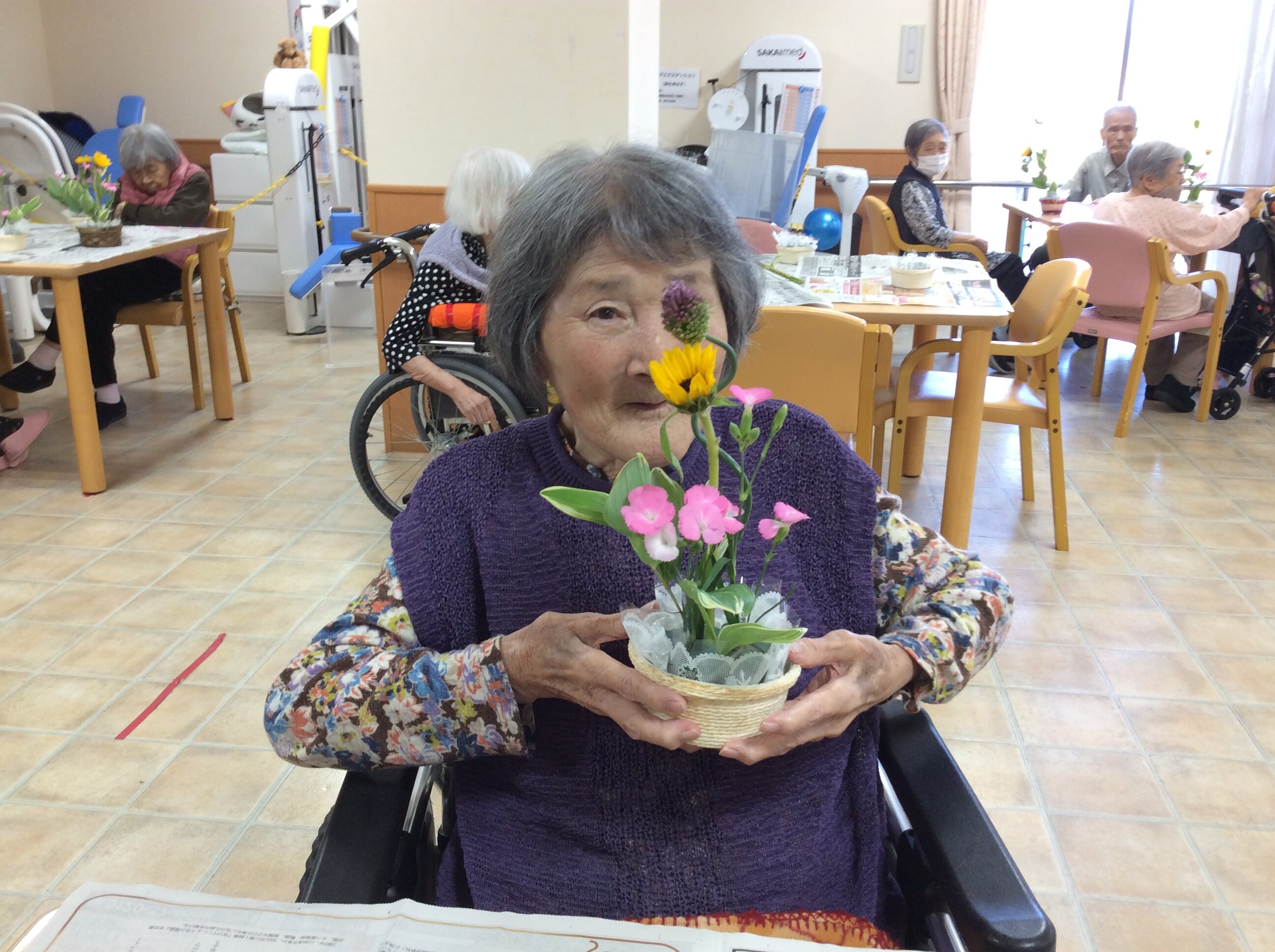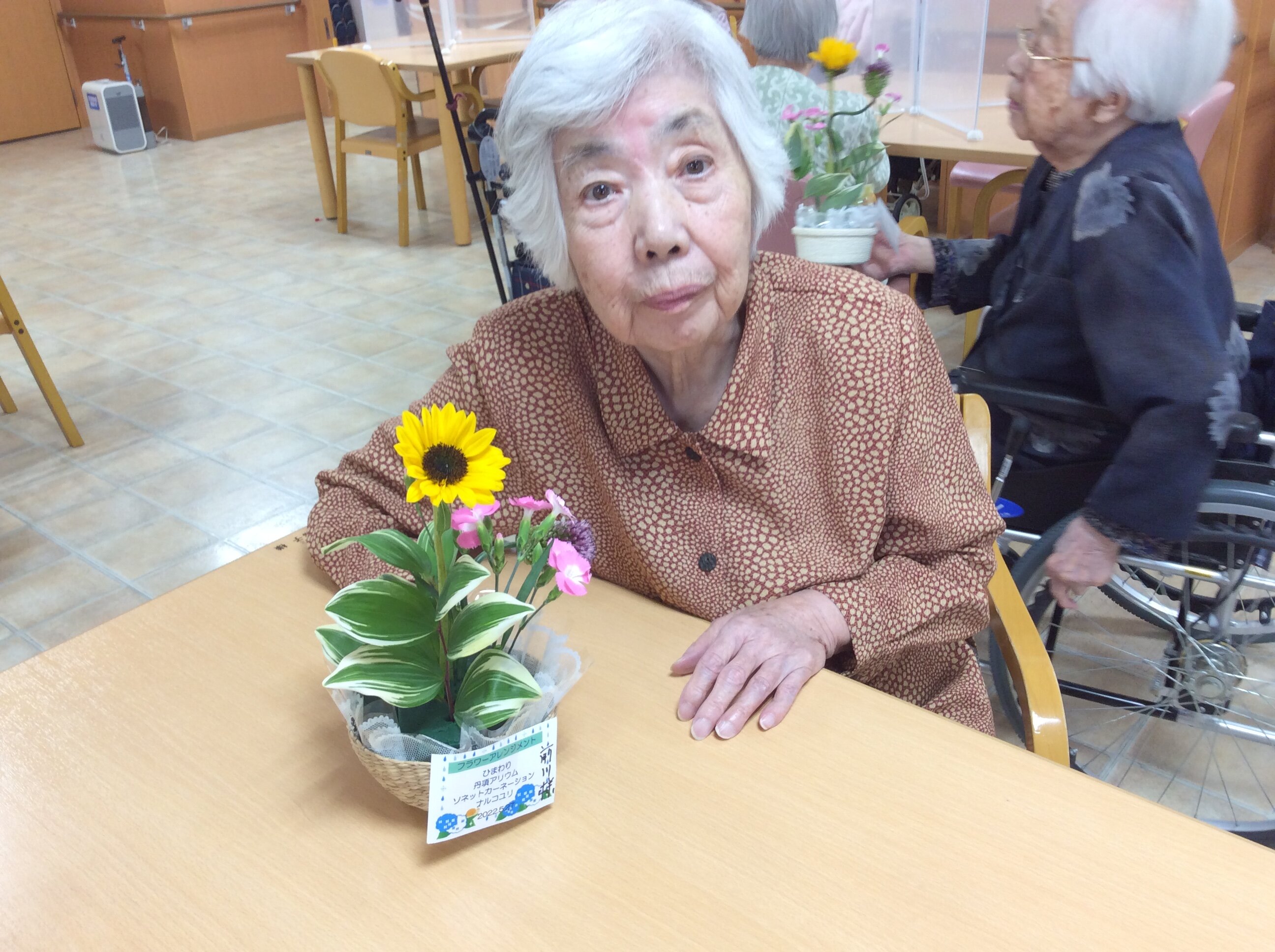 先日は利用者の皆様でいろんなお花を使ってのフラワーアレンジメントを開催致しました。