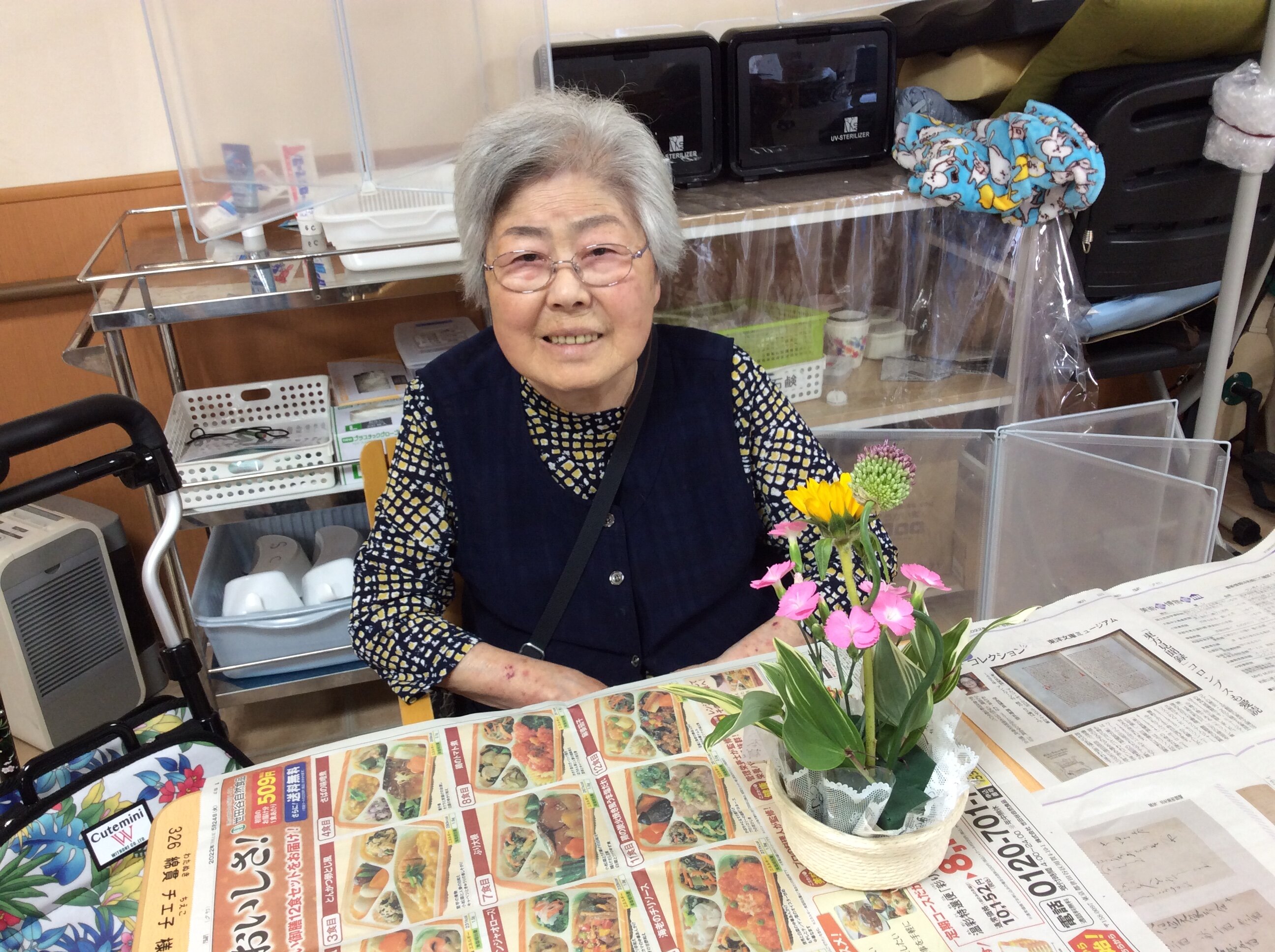 利用者お一人おひとりが自分の好みに合わせたお花を飾って作っておられました。