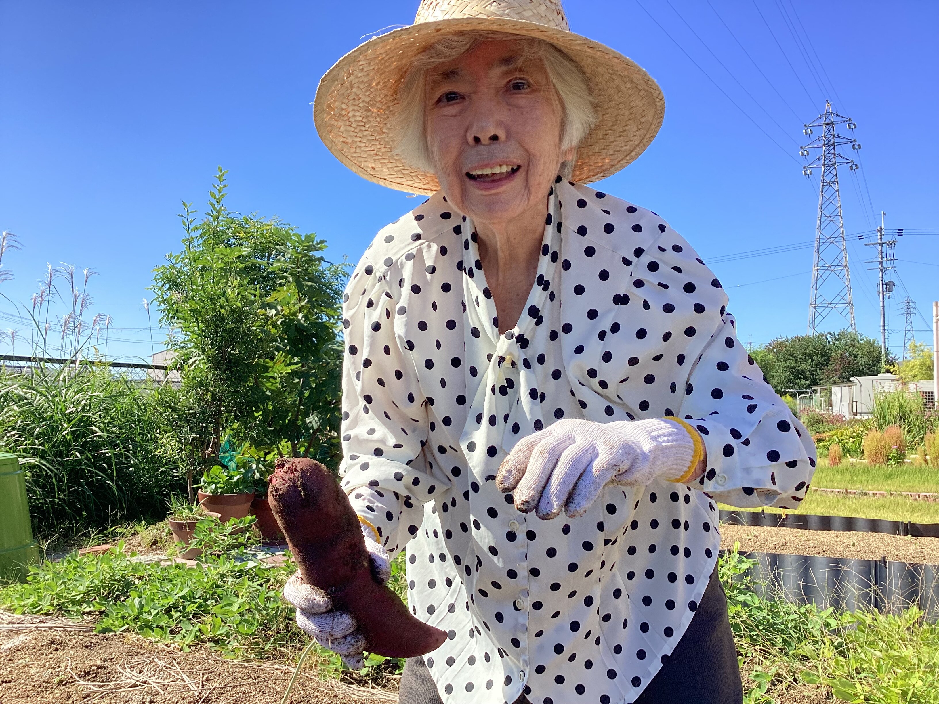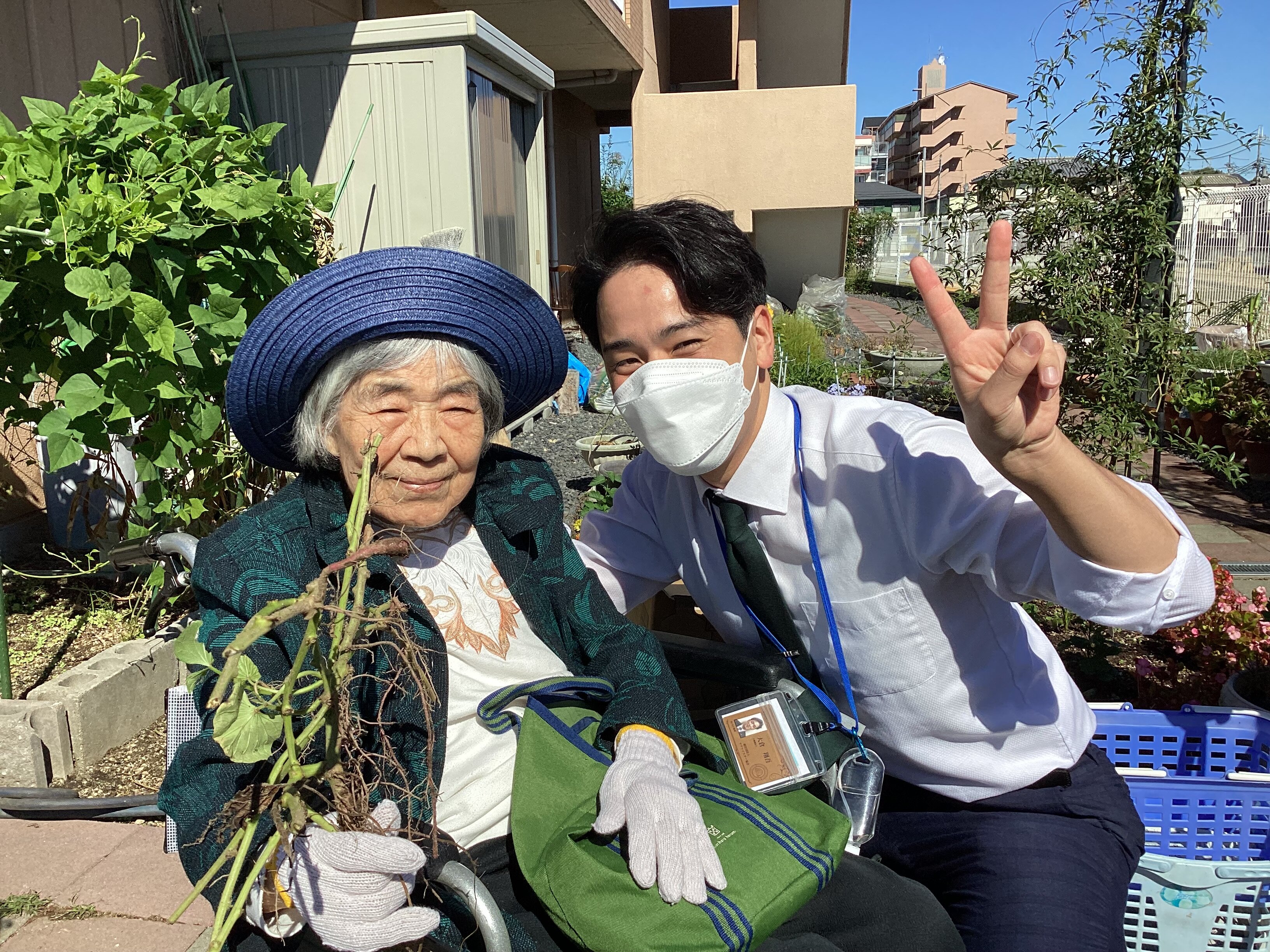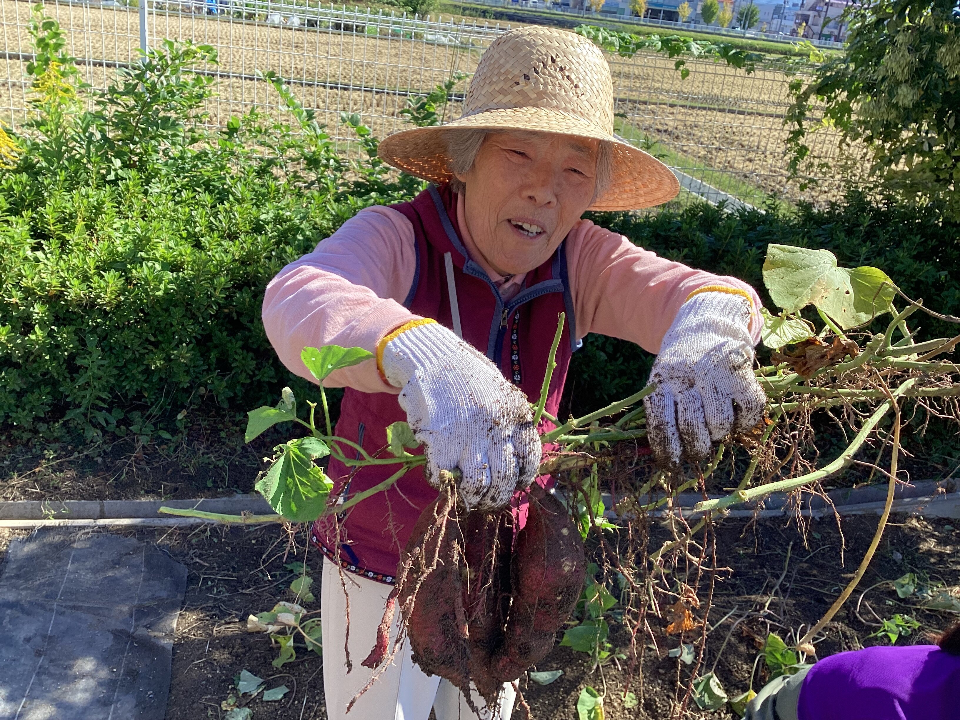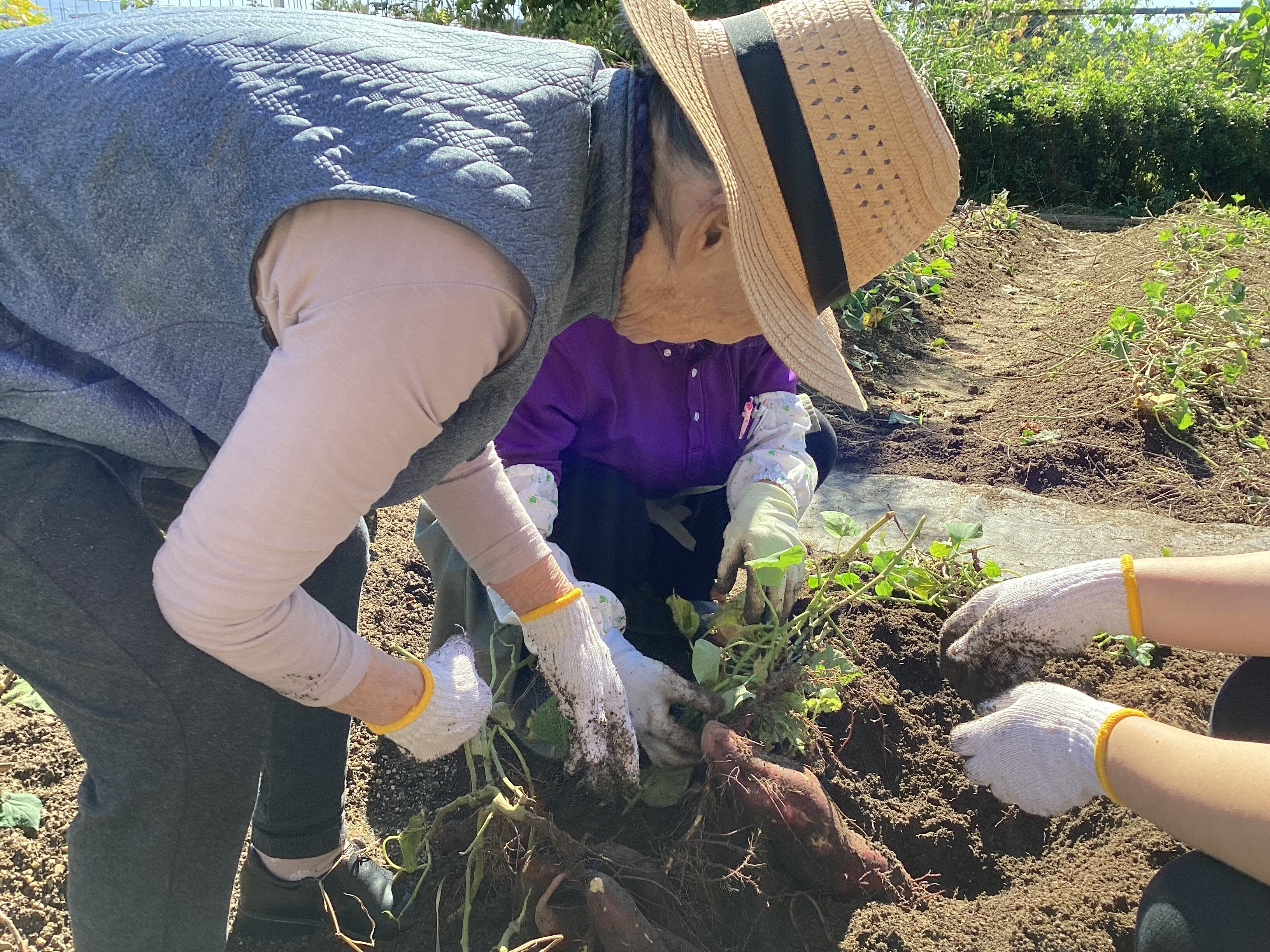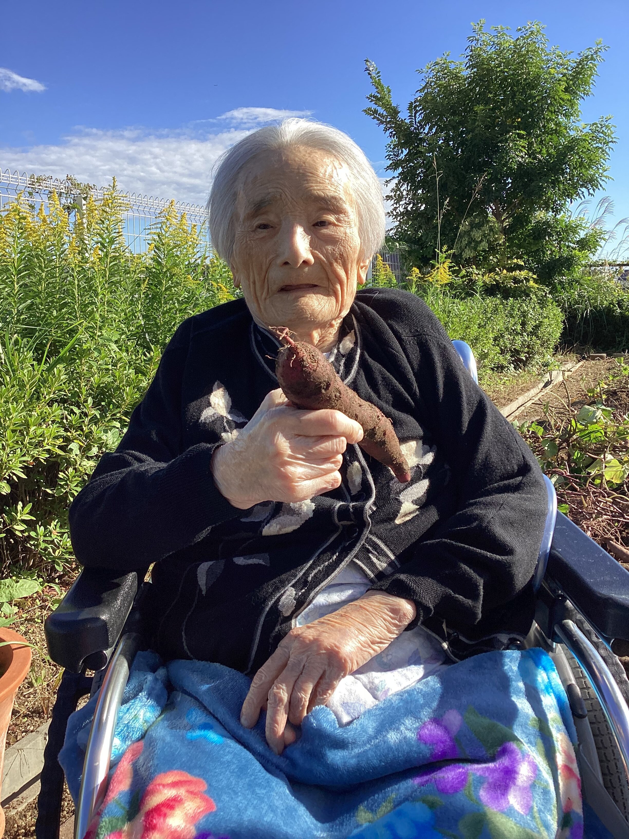 先日、職員とご入居者の皆様で筒井の自慢の庭でなったサツマイモを収穫しました(^^♪