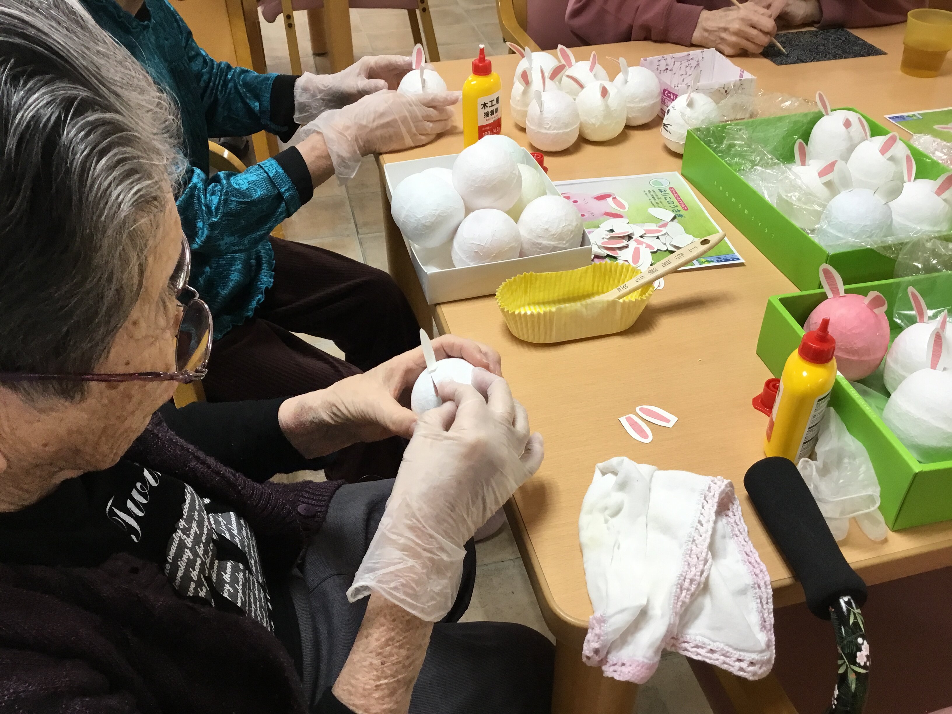 ご入居者様の皆様も話し合いながらここをどうするかや耳と目をどこにつけるか、