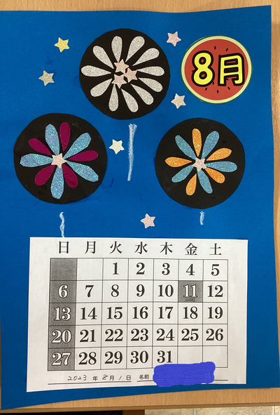 そんな8月を迎えるにあたって、ご入居者のみなさんと一緒に8月のカレンダーを作りました♪