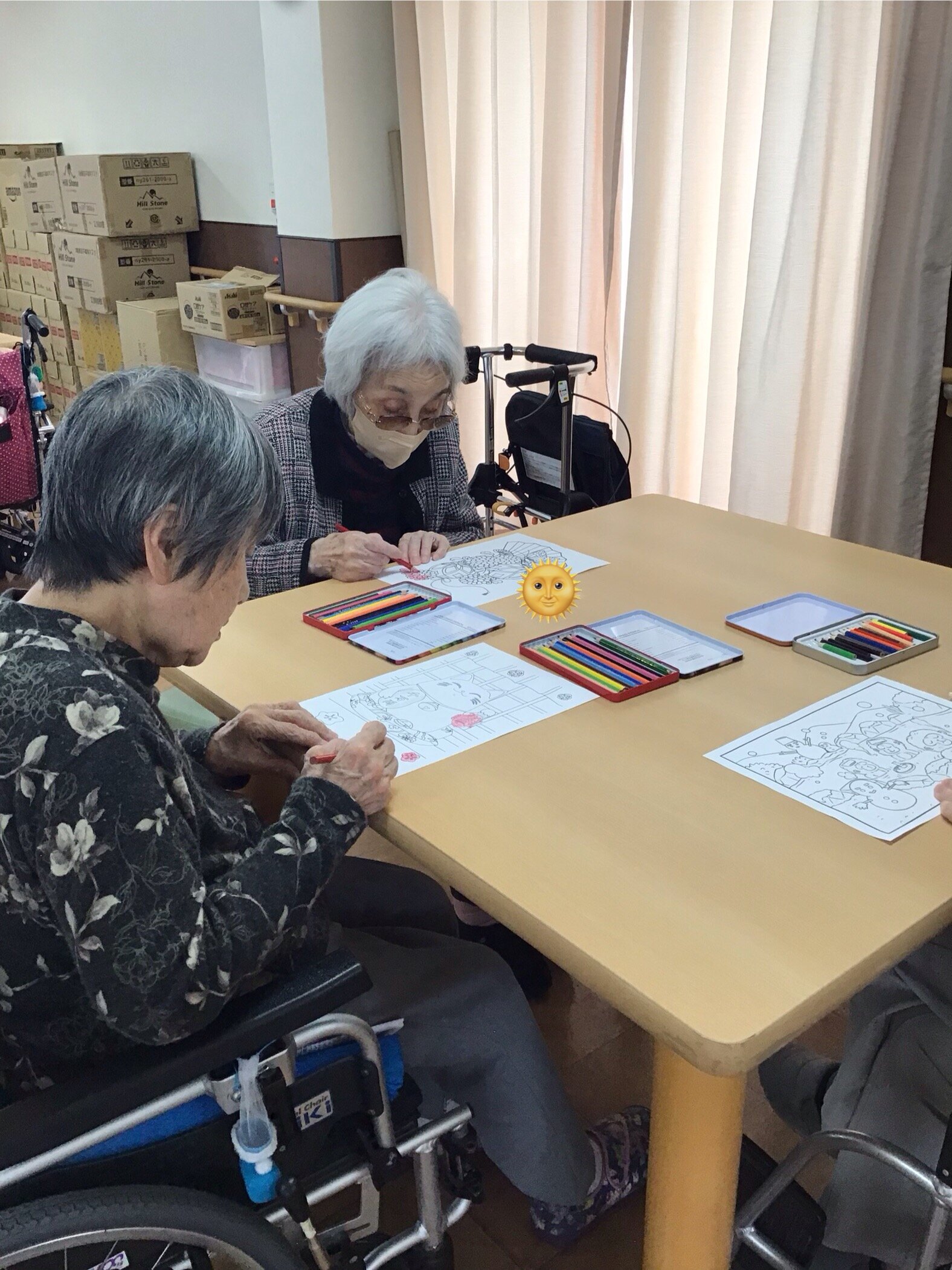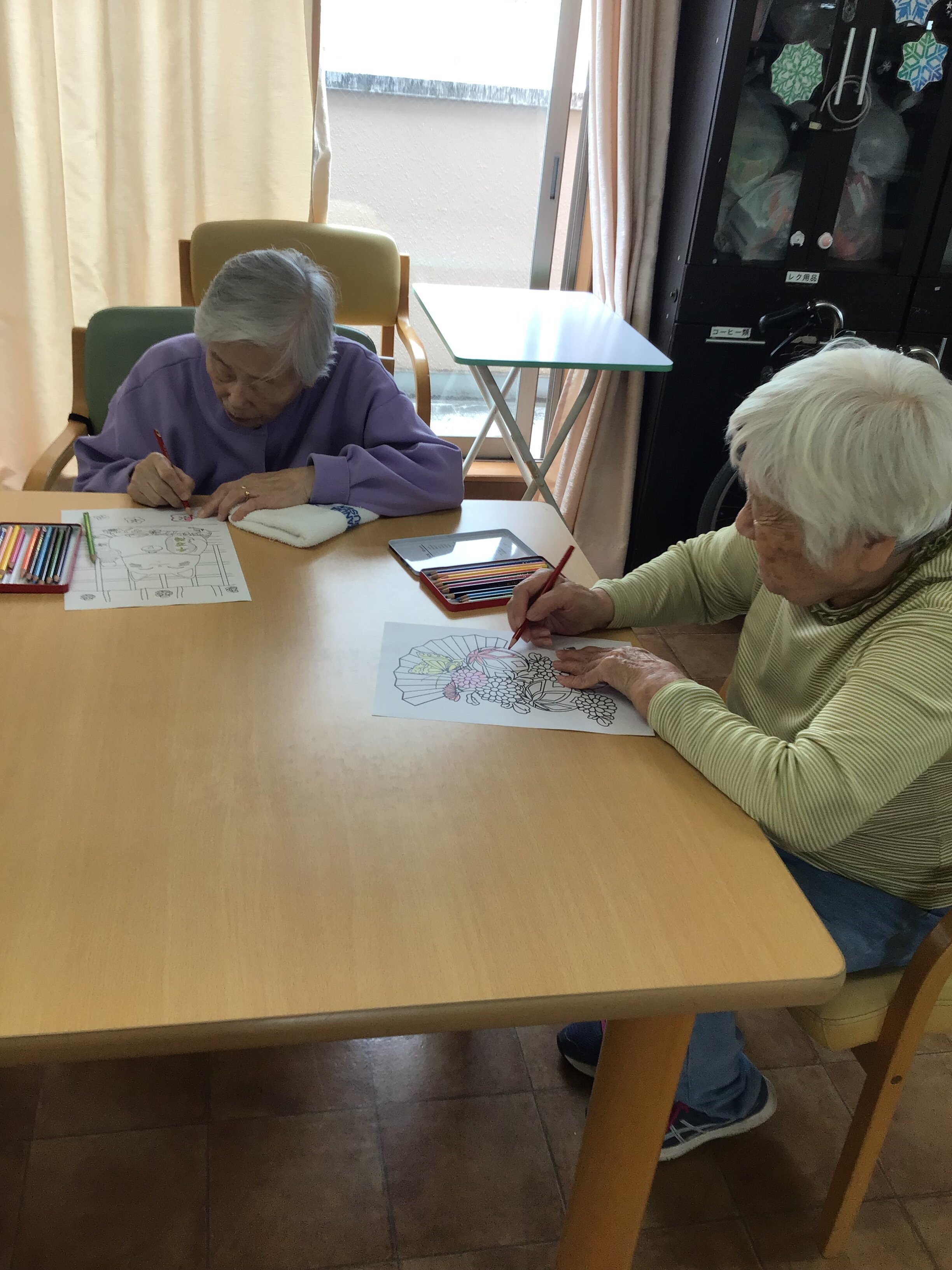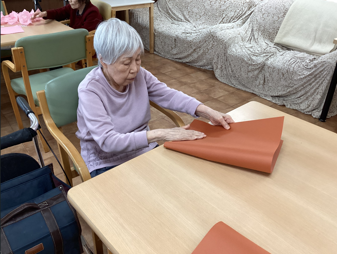 今日は、来月の壁紙の製作レクリエーションに様子をお届けします♪