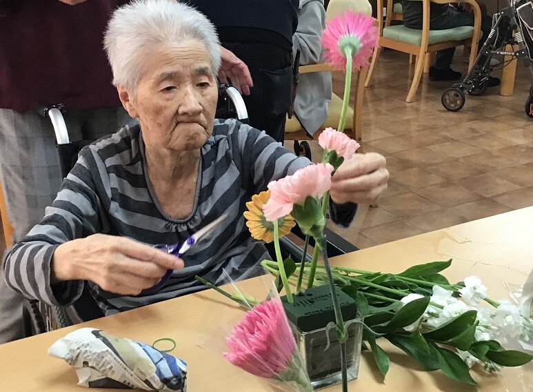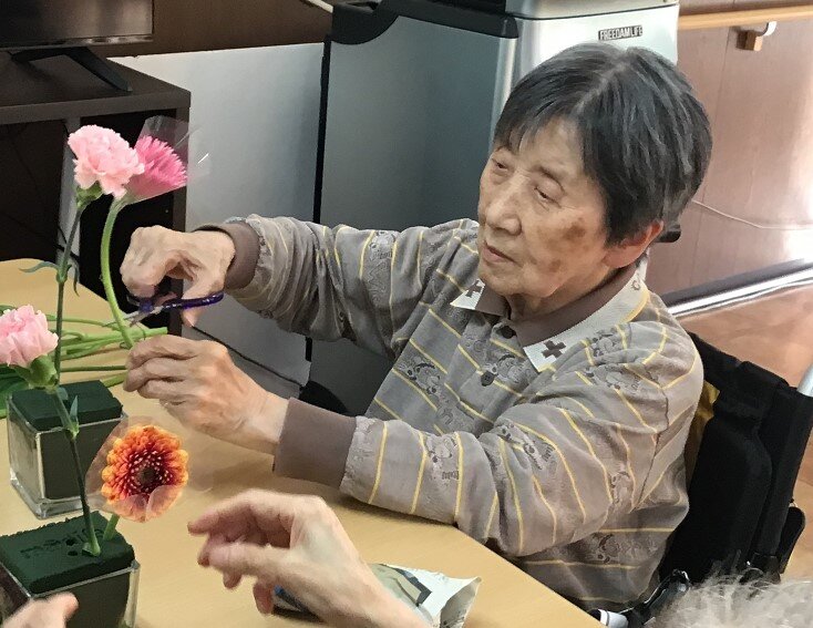 大好評なので定期的にフラワーアレンジメントを開催していますが、回を重ねるごとに上手になっています!