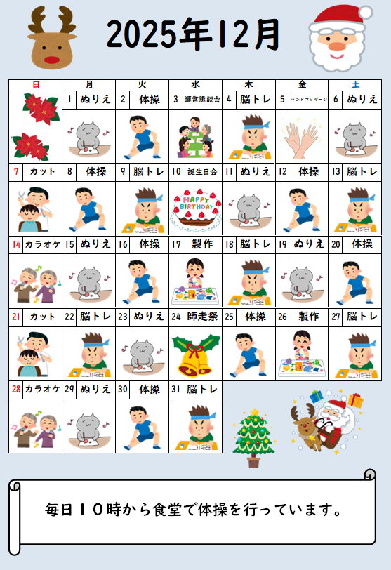 今回はご利用者の皆様と一緒に製作した12月の掲示物を紹介します!