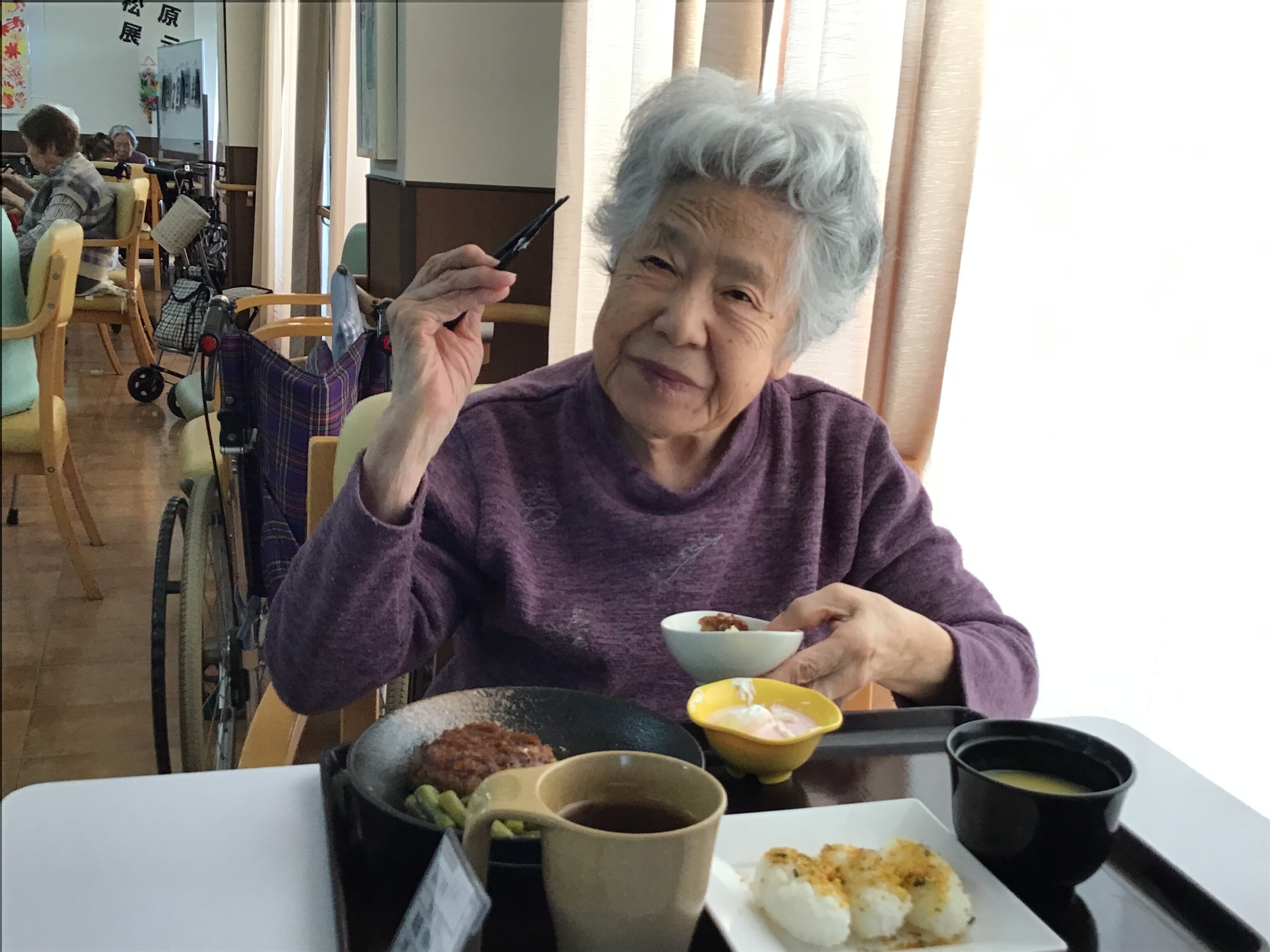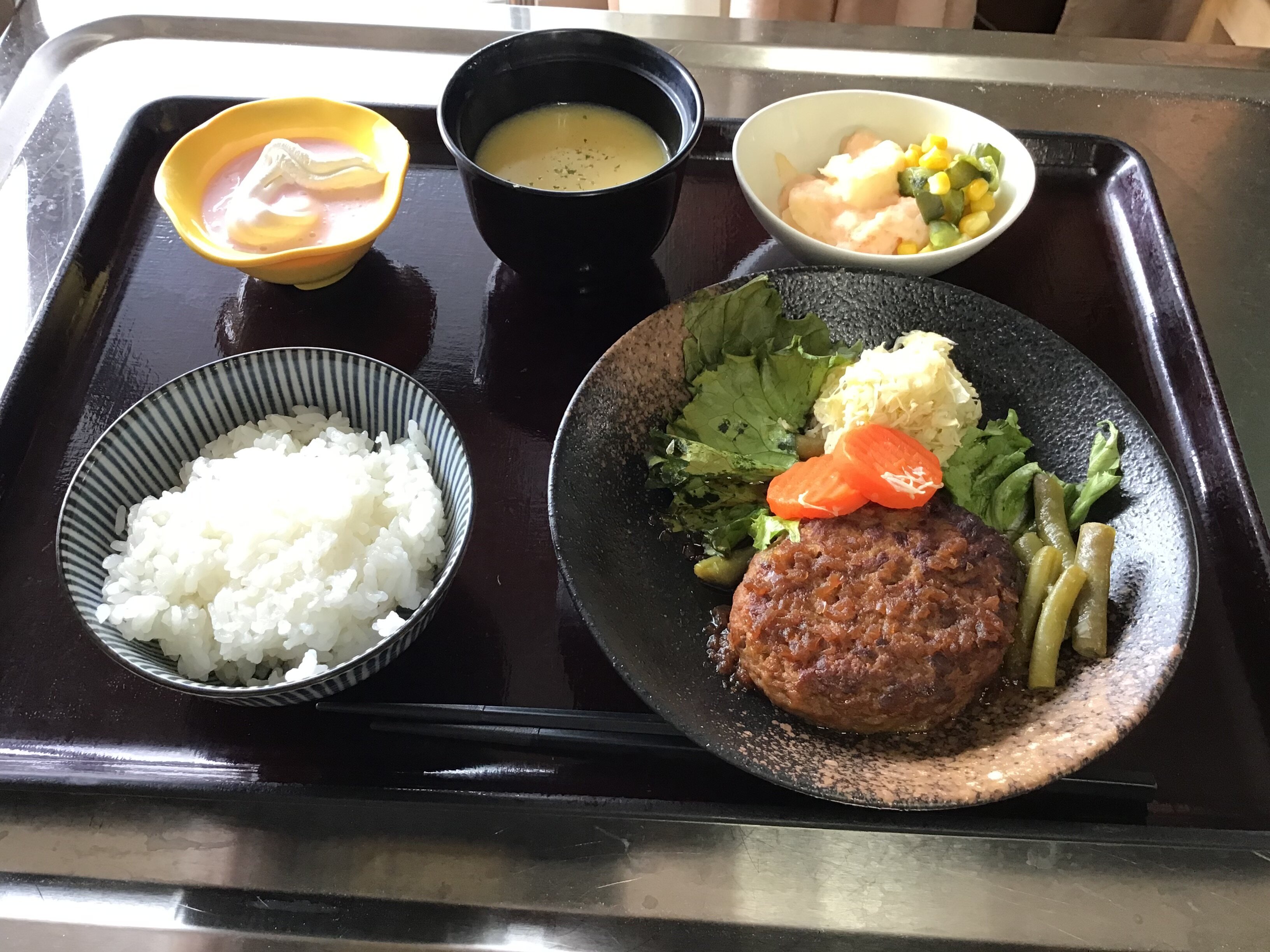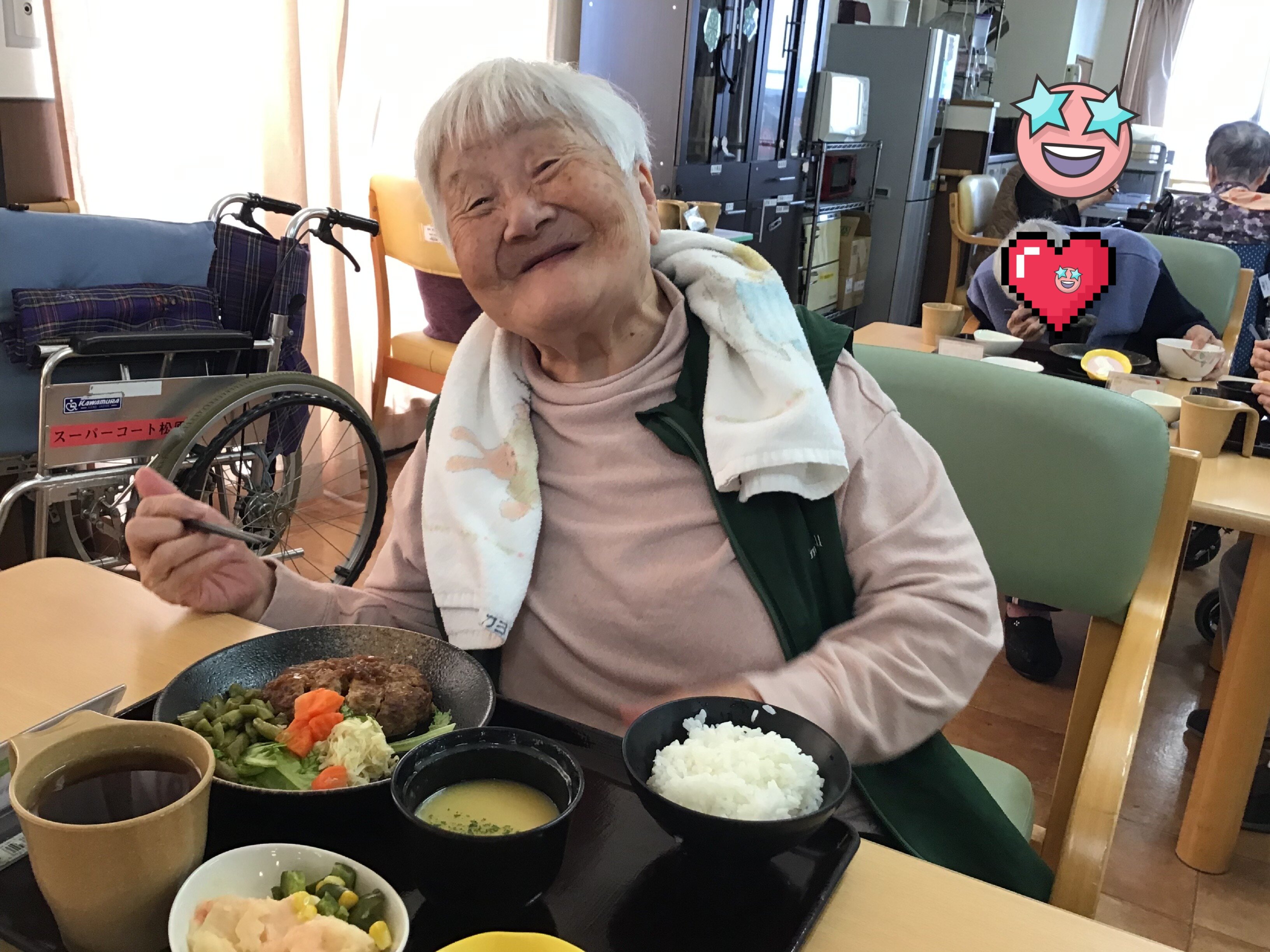 「ハンバーグ柔らかいわ~」と笑顔です(≧▽≦)