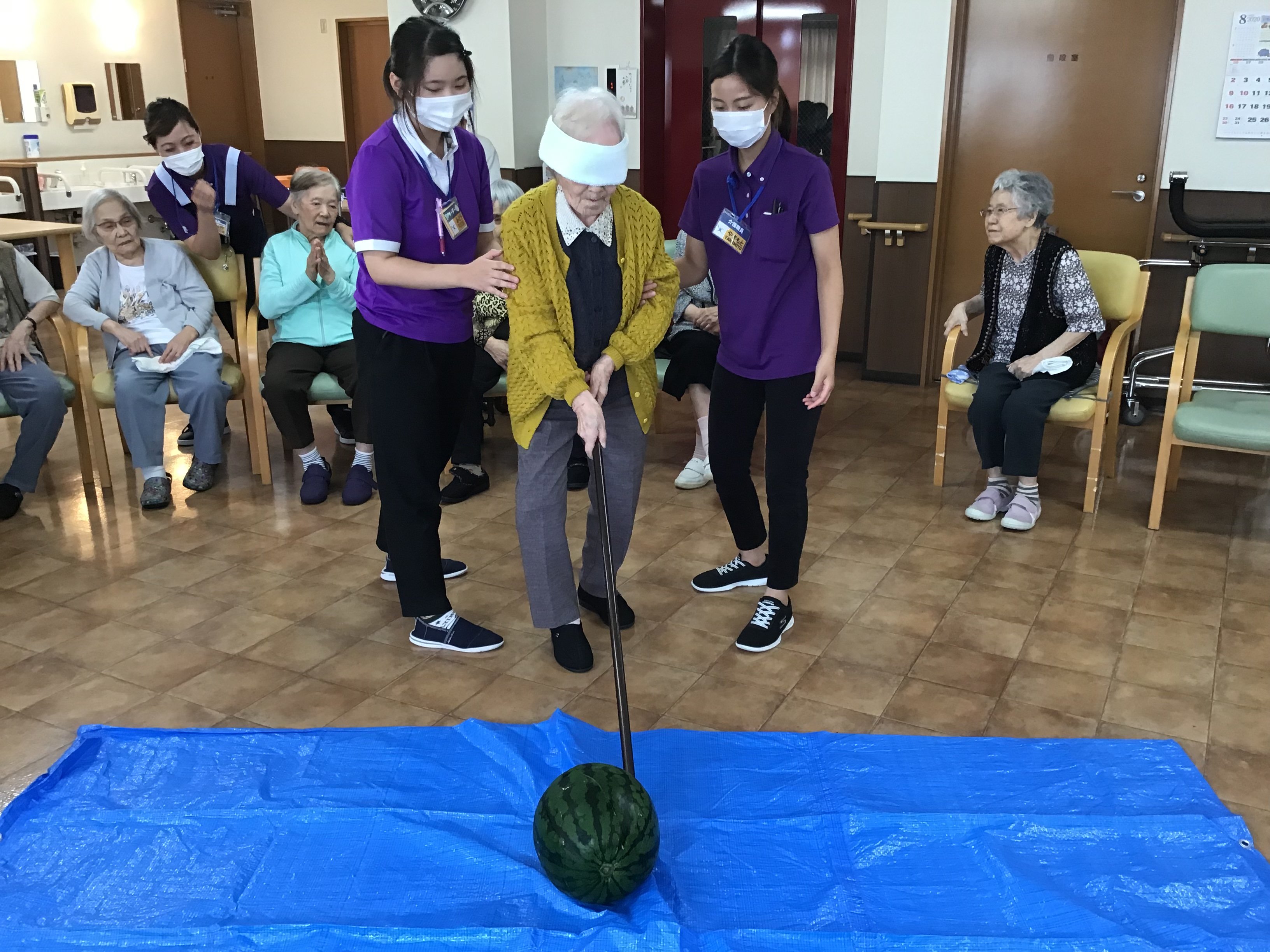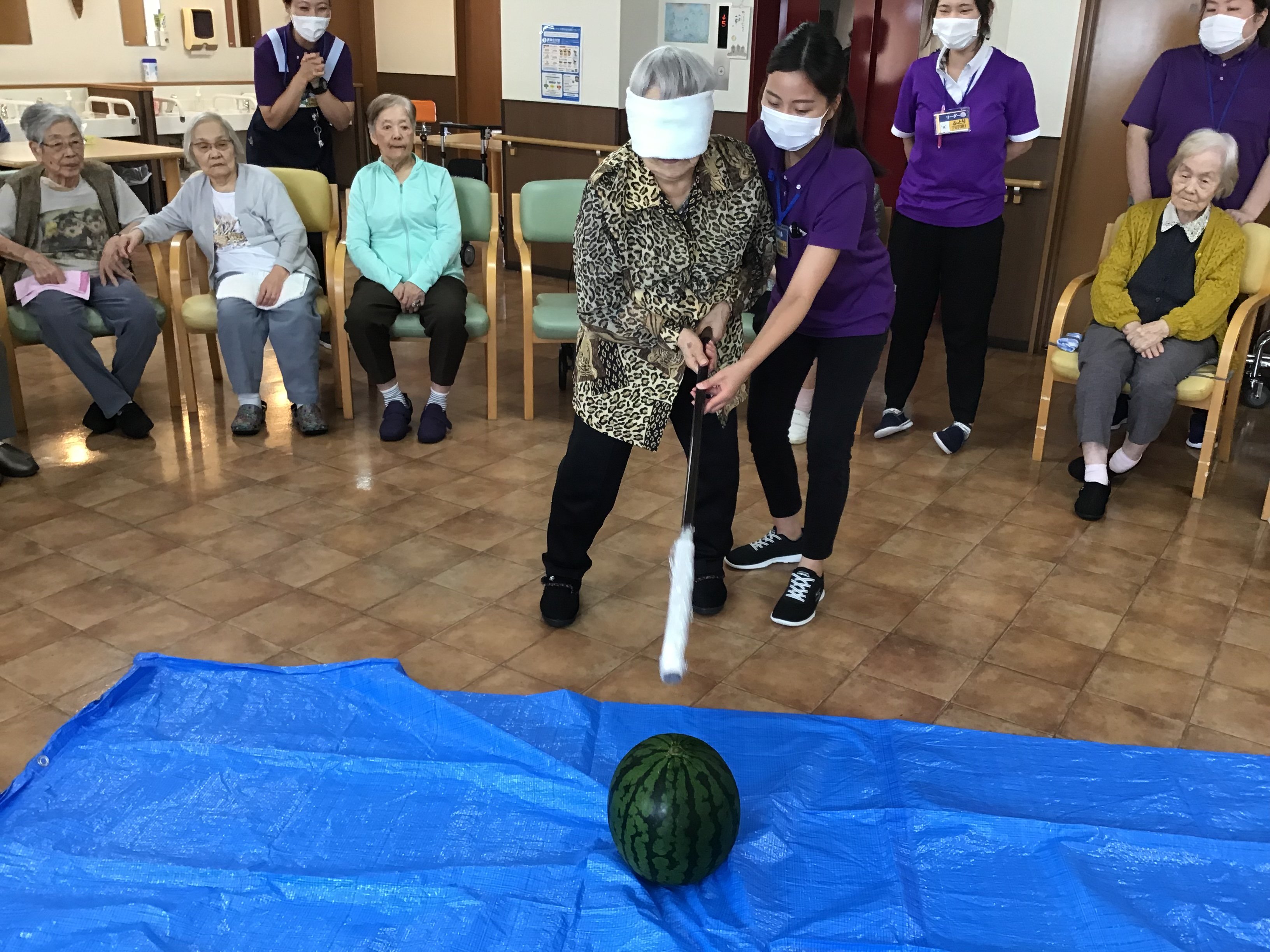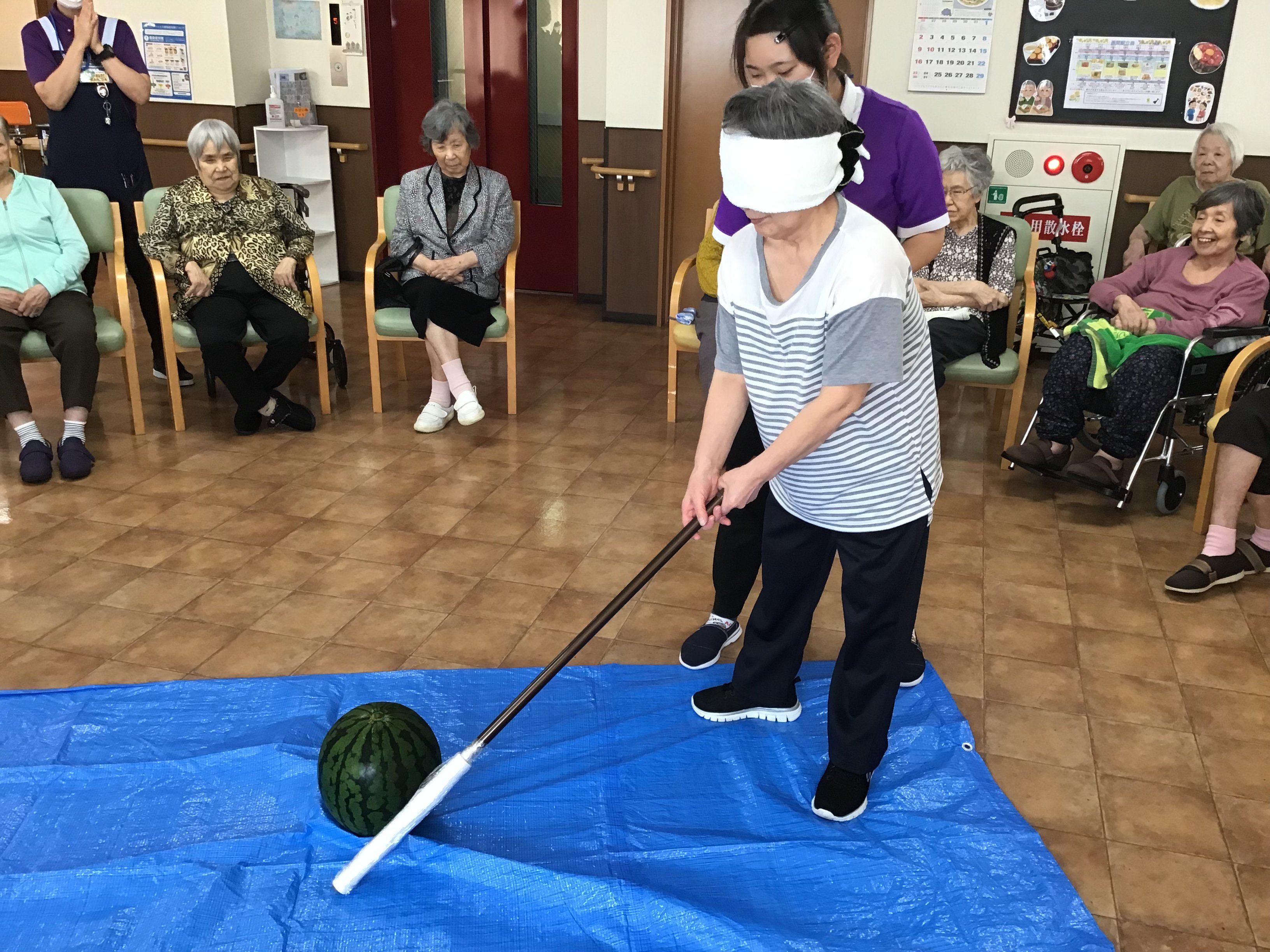 目隠しは危ないかなと思ったんですけど、スイカ割り=目隠しということなんで