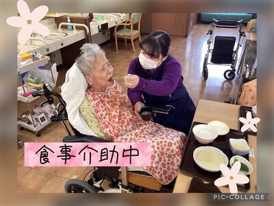 食事介助が必要な入居者様には、食事介助で関わりながらコミュニケーションをとっています。