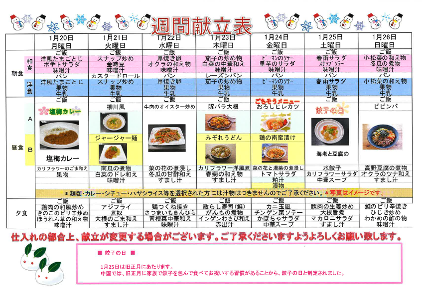 今週の献立を掲載します! 美味しそうなメニューがたくさんありますね^ - ^