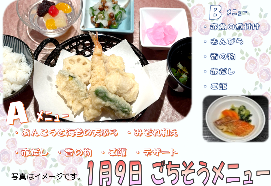 明日から2026年を迎えることになりますが、スーパー・コート松原では年始にはおせち料理をご用意させていただき、その他にも福笑い、おみくじ、書初め、睦月祭ではブリの解体ショー、毎週金曜日にはごちそうメニューの提供など様々なレクリエーションや催し物を予定しております!
