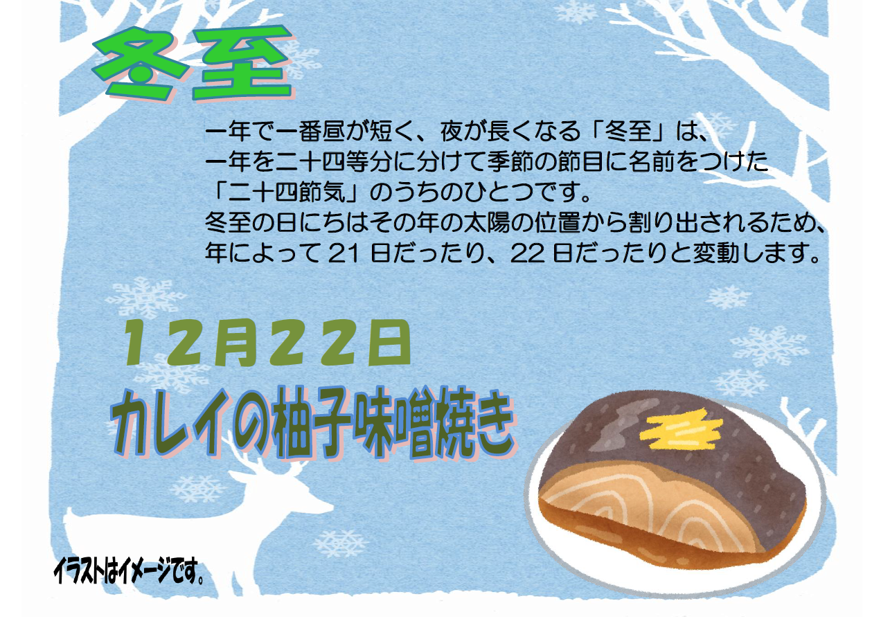 本日12/22は冬至のお昼ごはんはカレイの柚子味噌焼きになります!