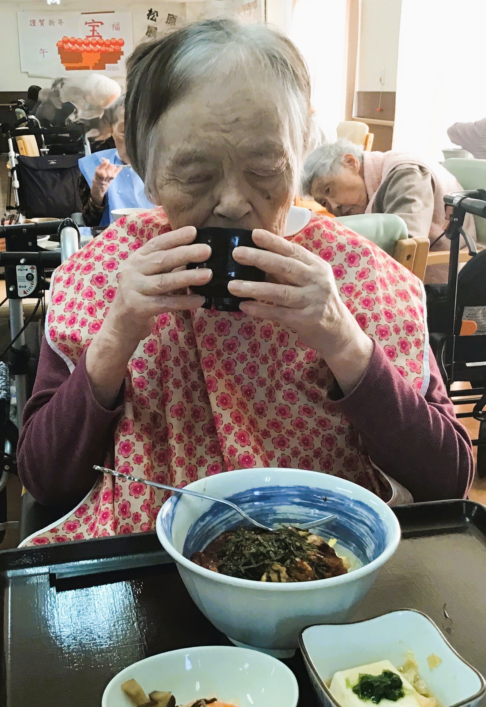 動画では、着物姿の先生による素敵なピアノ演奏に合わせて、ご入居者の皆様が歌詞カードを見ながら歌を口ずさまれたり、リズムにのったりと、音楽を楽しまれているご様子がご覧いただけます。