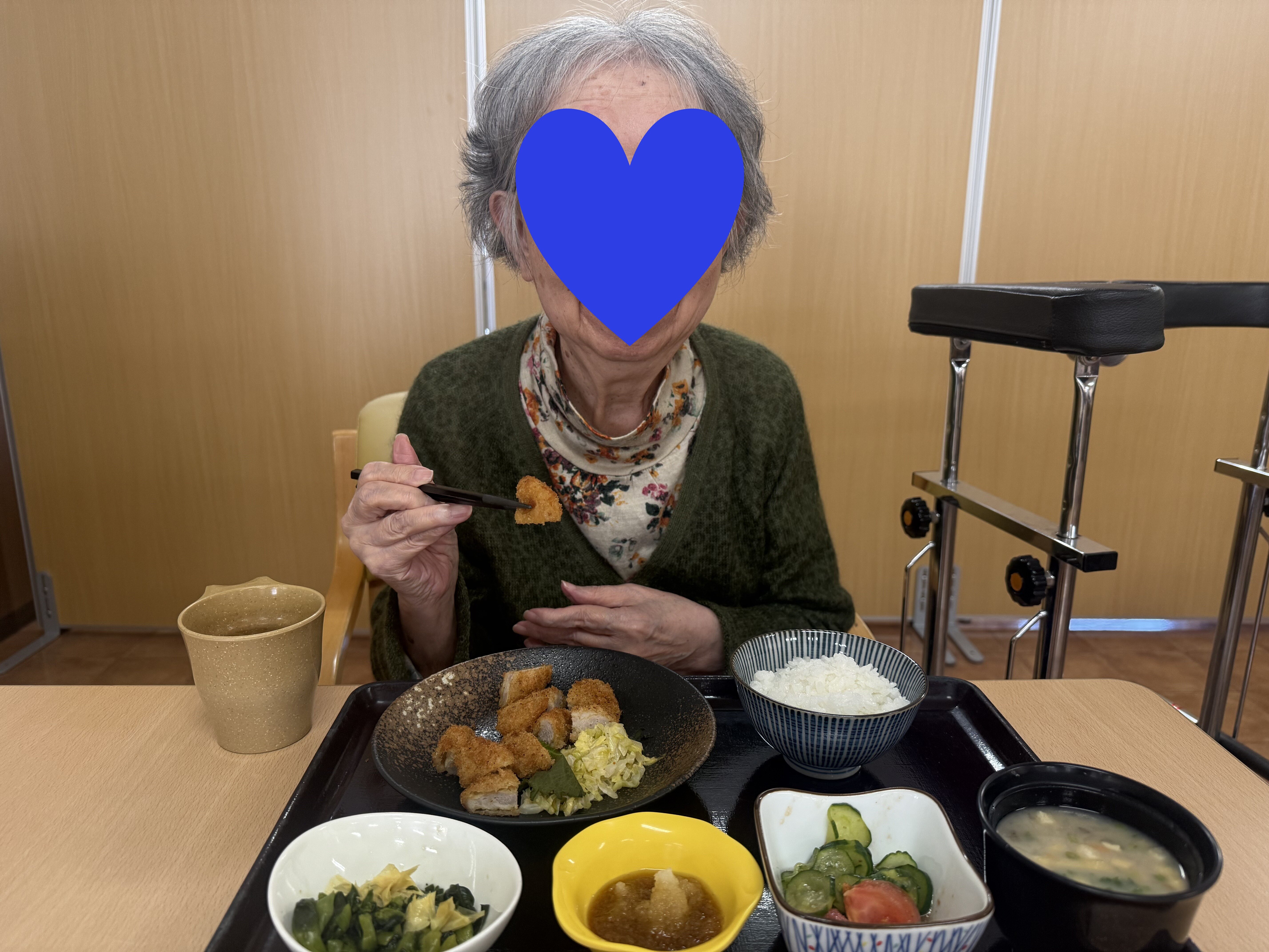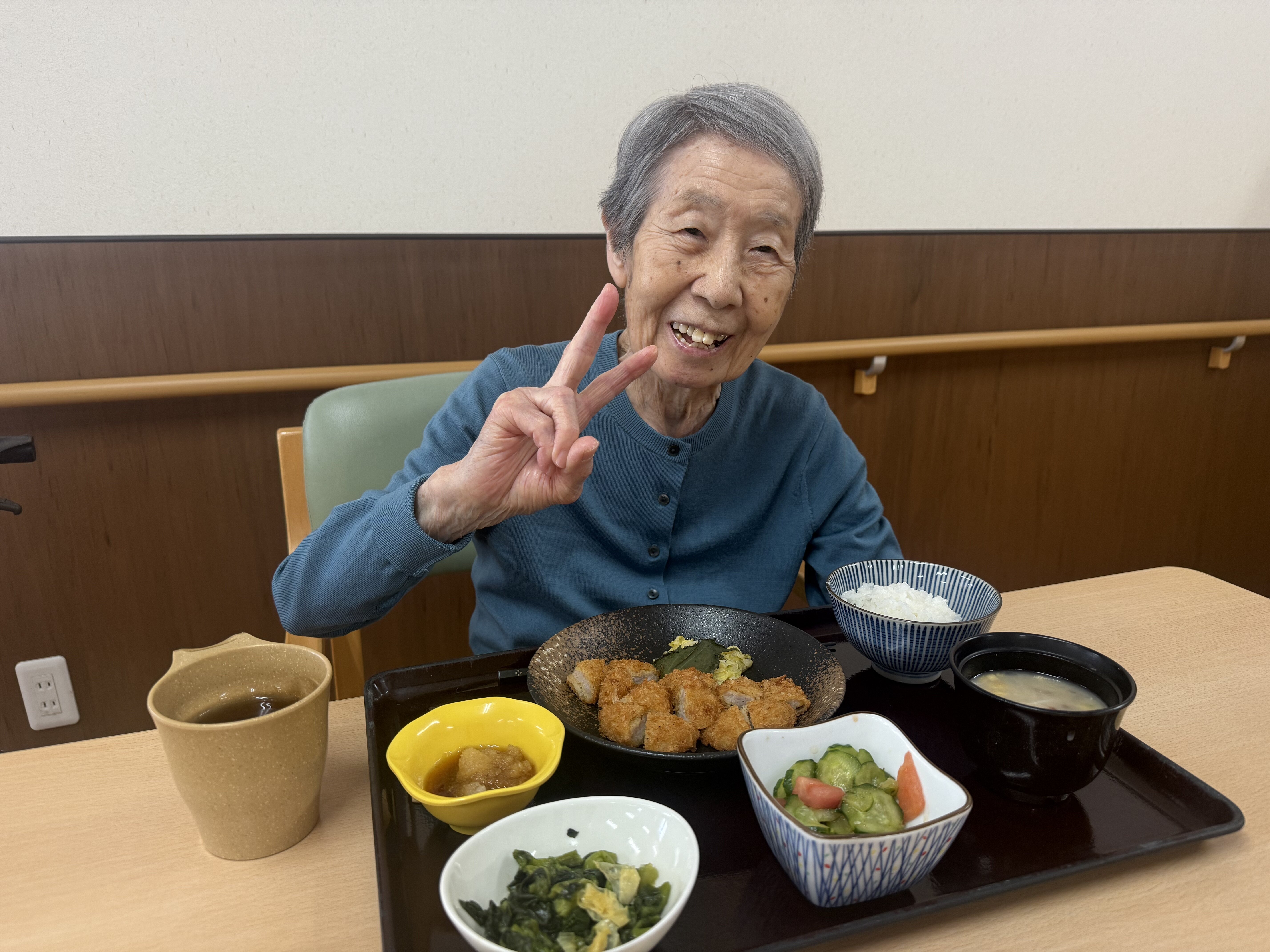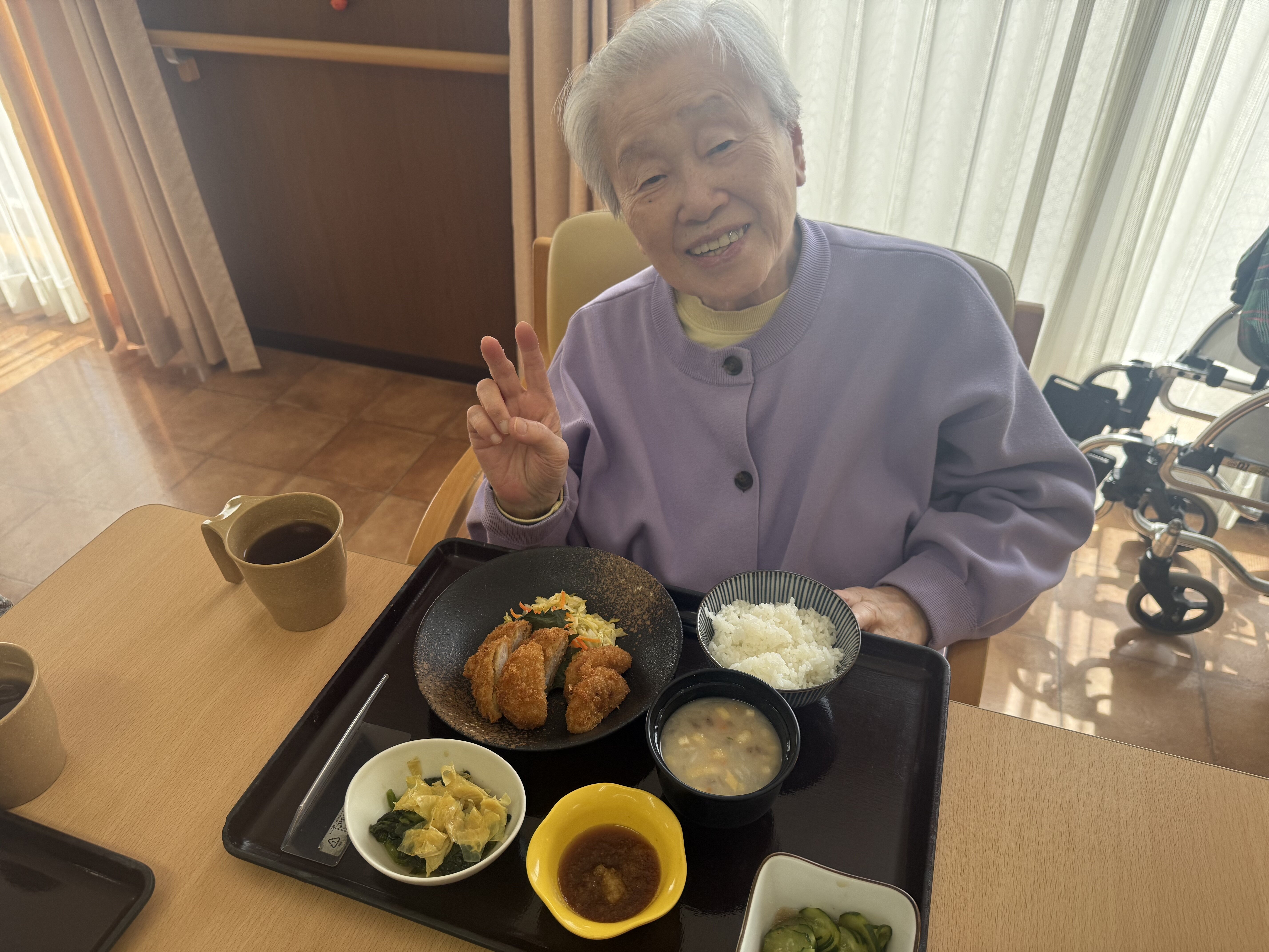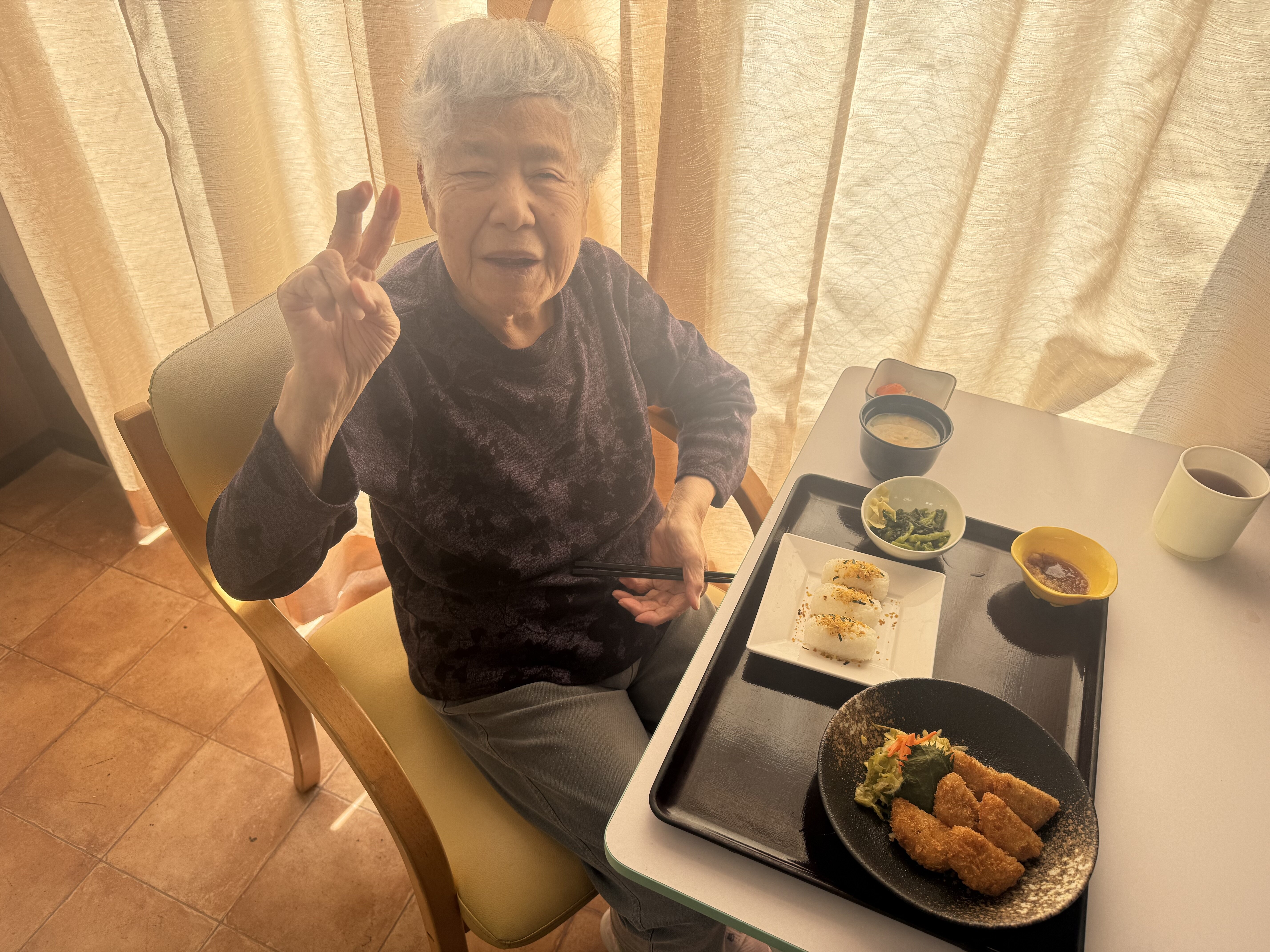 「美味しいよ。お姉ちゃんも食べる~?」などと職員とも楽しくお話されていました!(^^)!