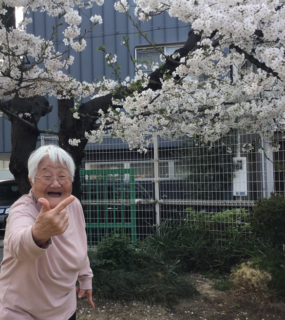 桜の前でハイ!ポーズ!