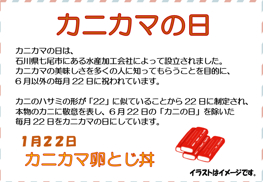 カニカマの日があるとは知らなかったです(´・∀・`)