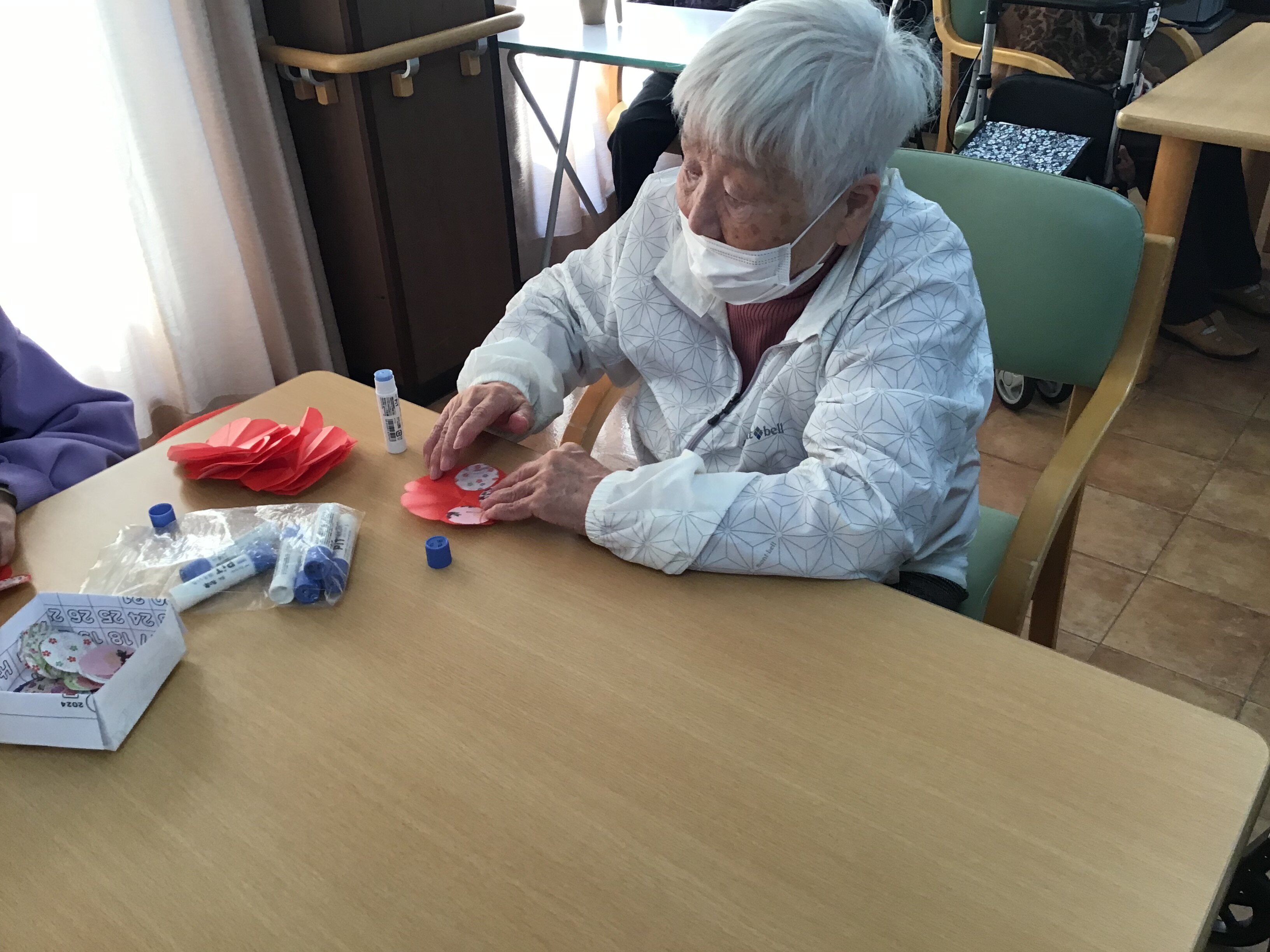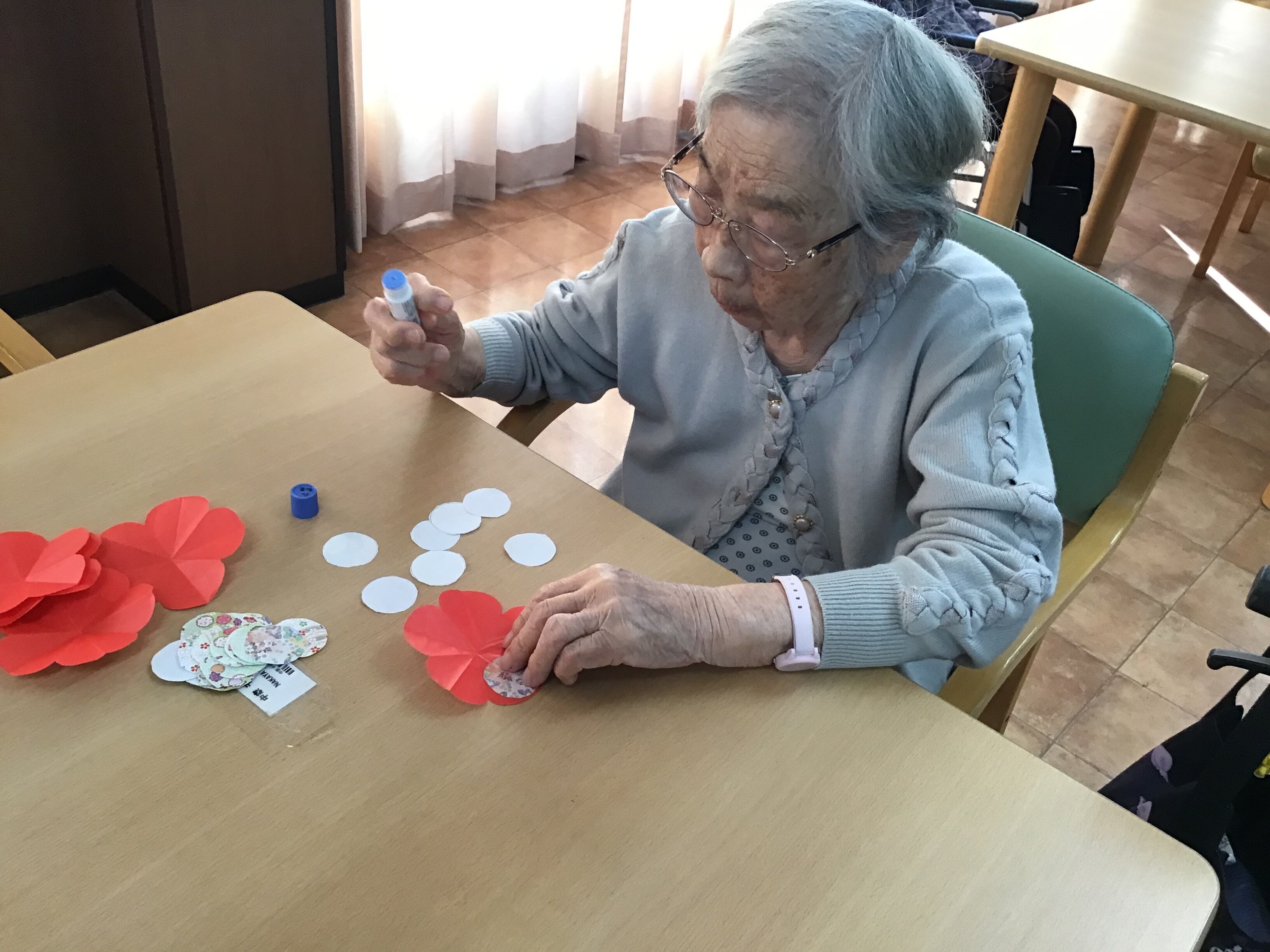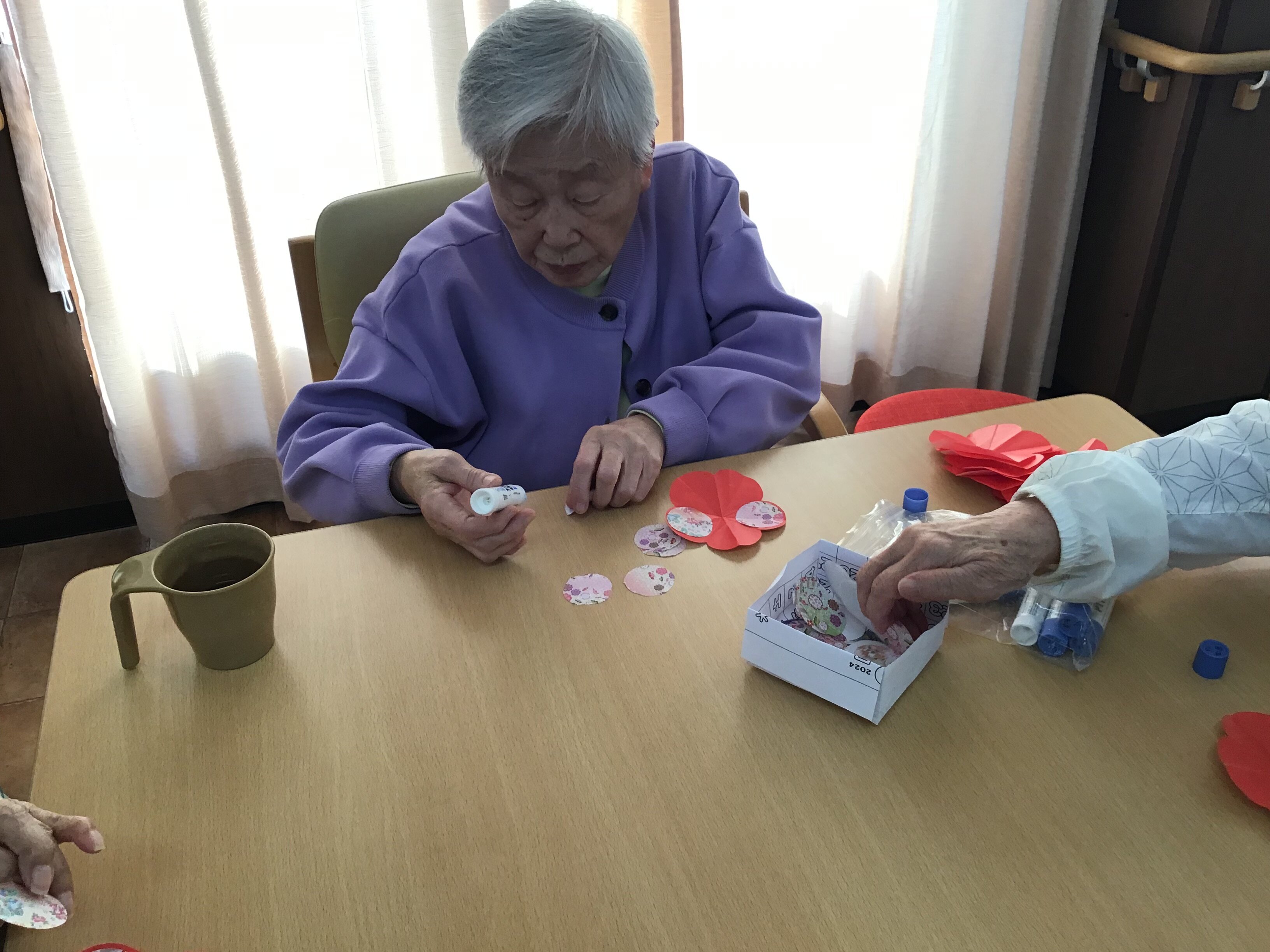 職員と一緒に色のバランスを考えながら丁寧に貼り付けておられます!