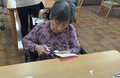 今日は、来月の壁紙の製作レクリエーションに様子をお届けします♪