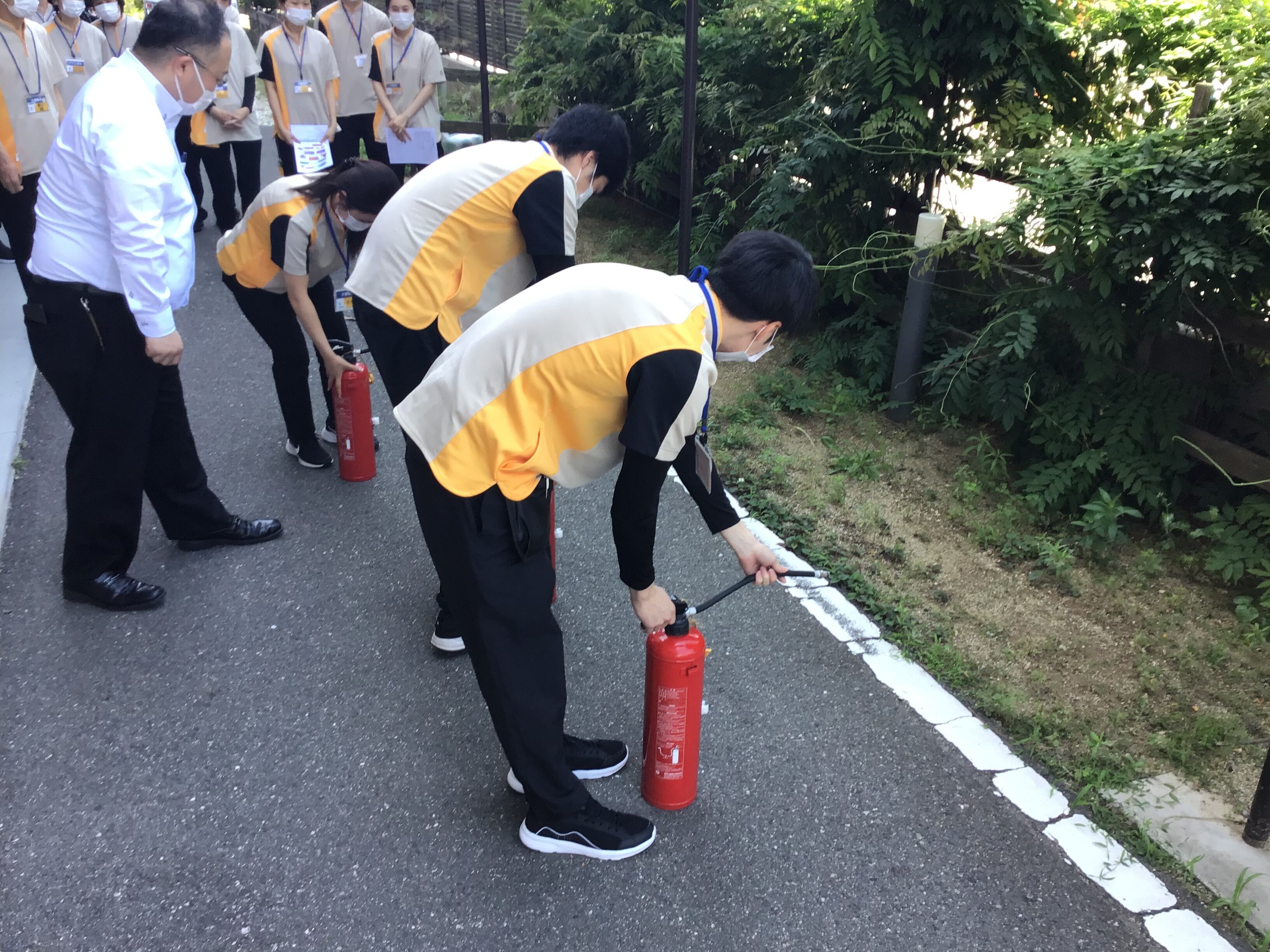 最初に勉強会を行い次に実際に消化器を使って訓練を行いました!
