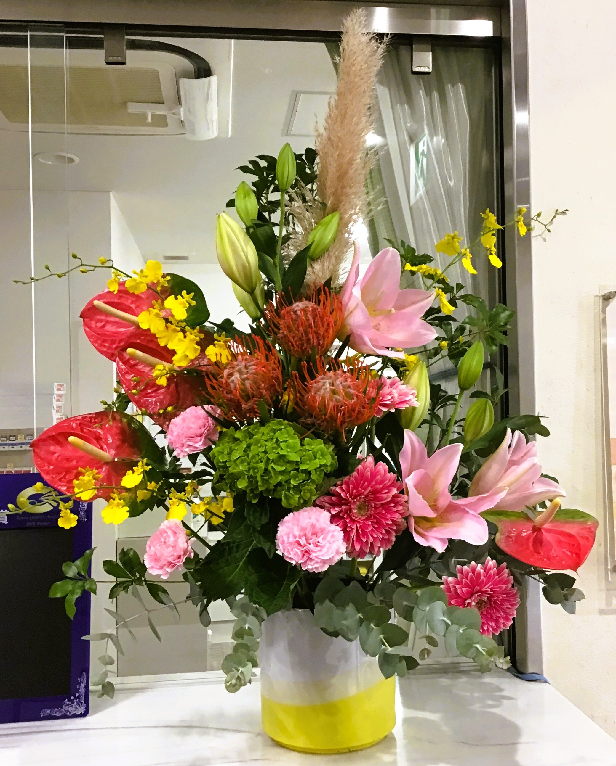 今月も玄関のお花を入れ替えて頂きましたので、ご紹介したいと思います(*^-^*)