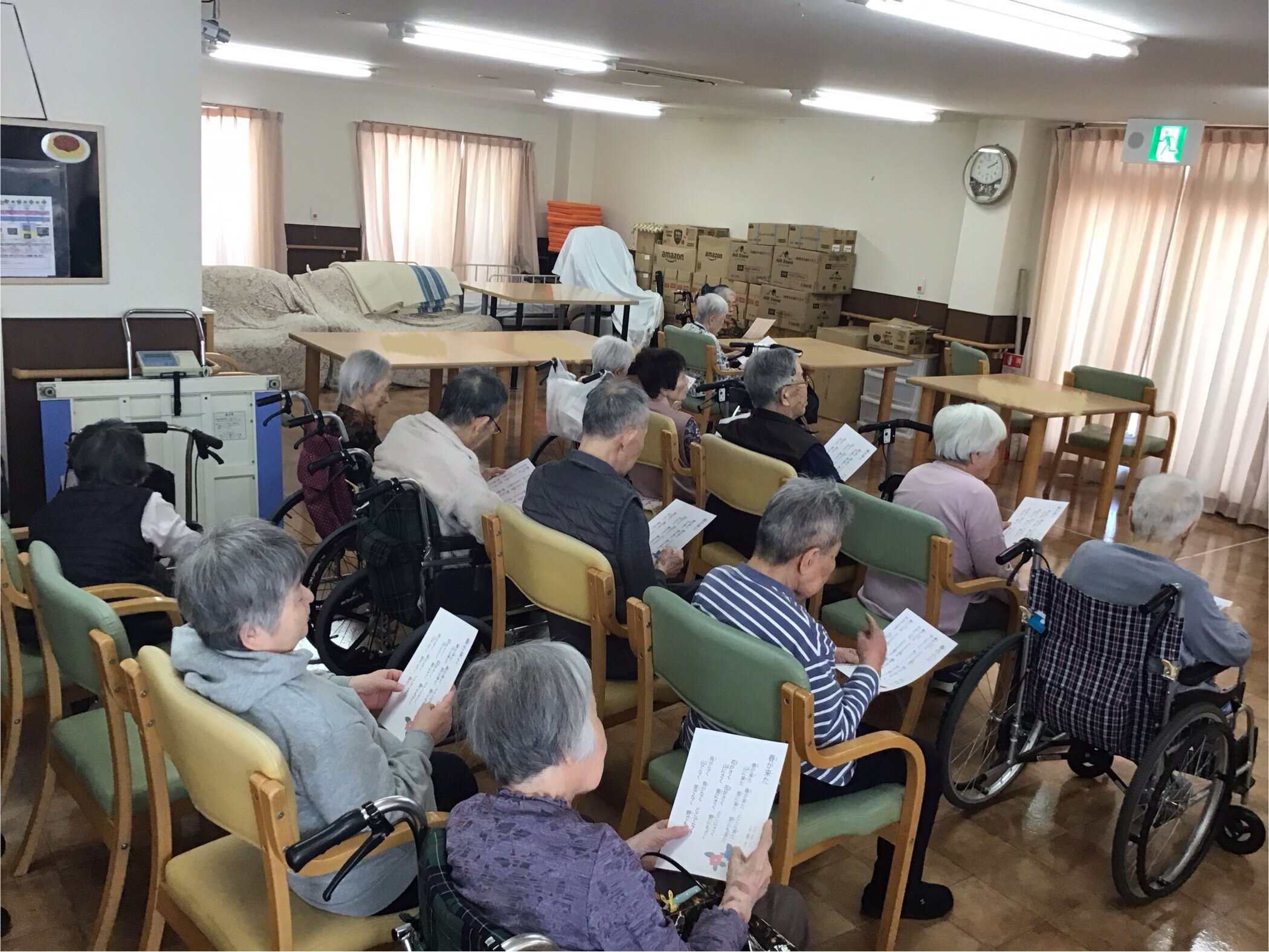 カラオケのなかに体操プログラムが幾つも入っており毎回、日替わりなので皆さん飽きることなく頑張っています!