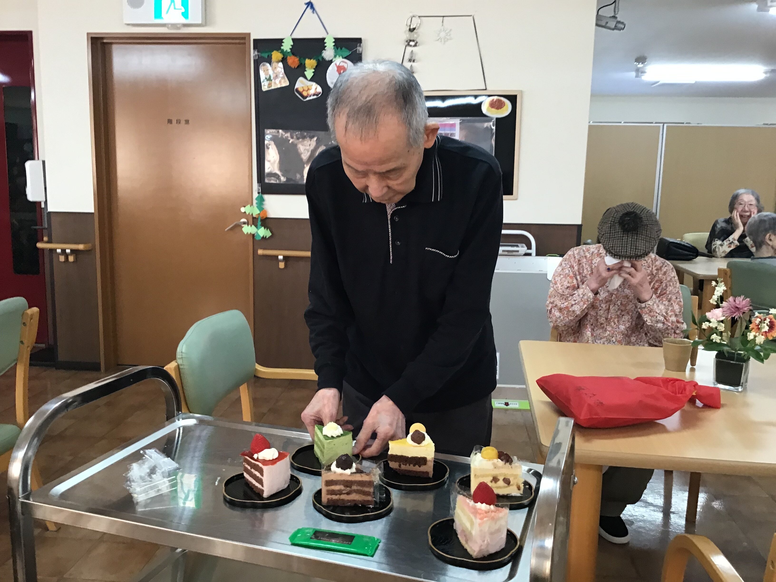 好きなケーキを選んでいただき、プレゼントと一緒にお祝いしました!