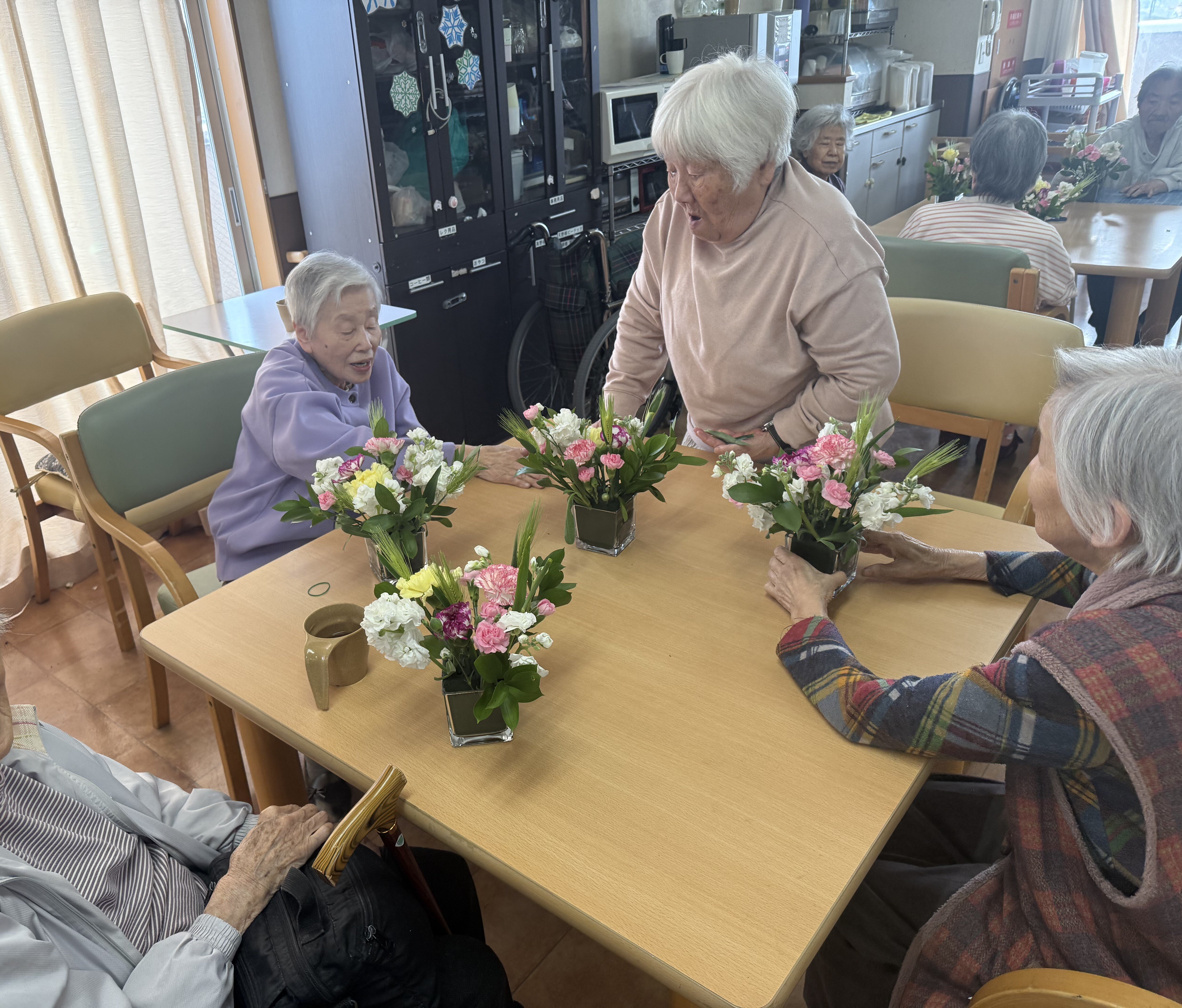大好評なので定期的にフラワーアレンジメントを開催していますが、回を重ねるごとに上手になっています!