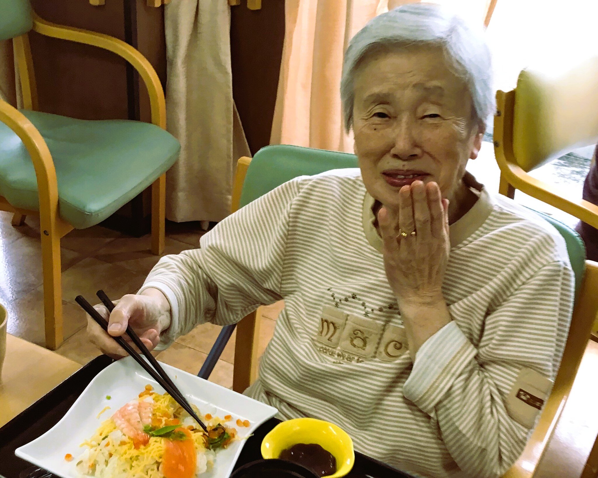 「ハンバーグ柔らかいわ~」と笑顔です(≧▽≦)