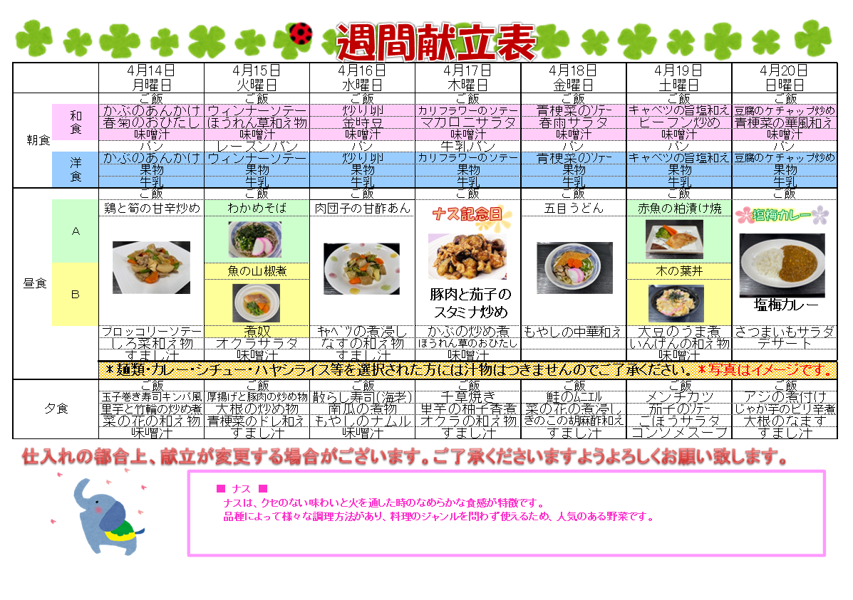来週の献立を掲載します!