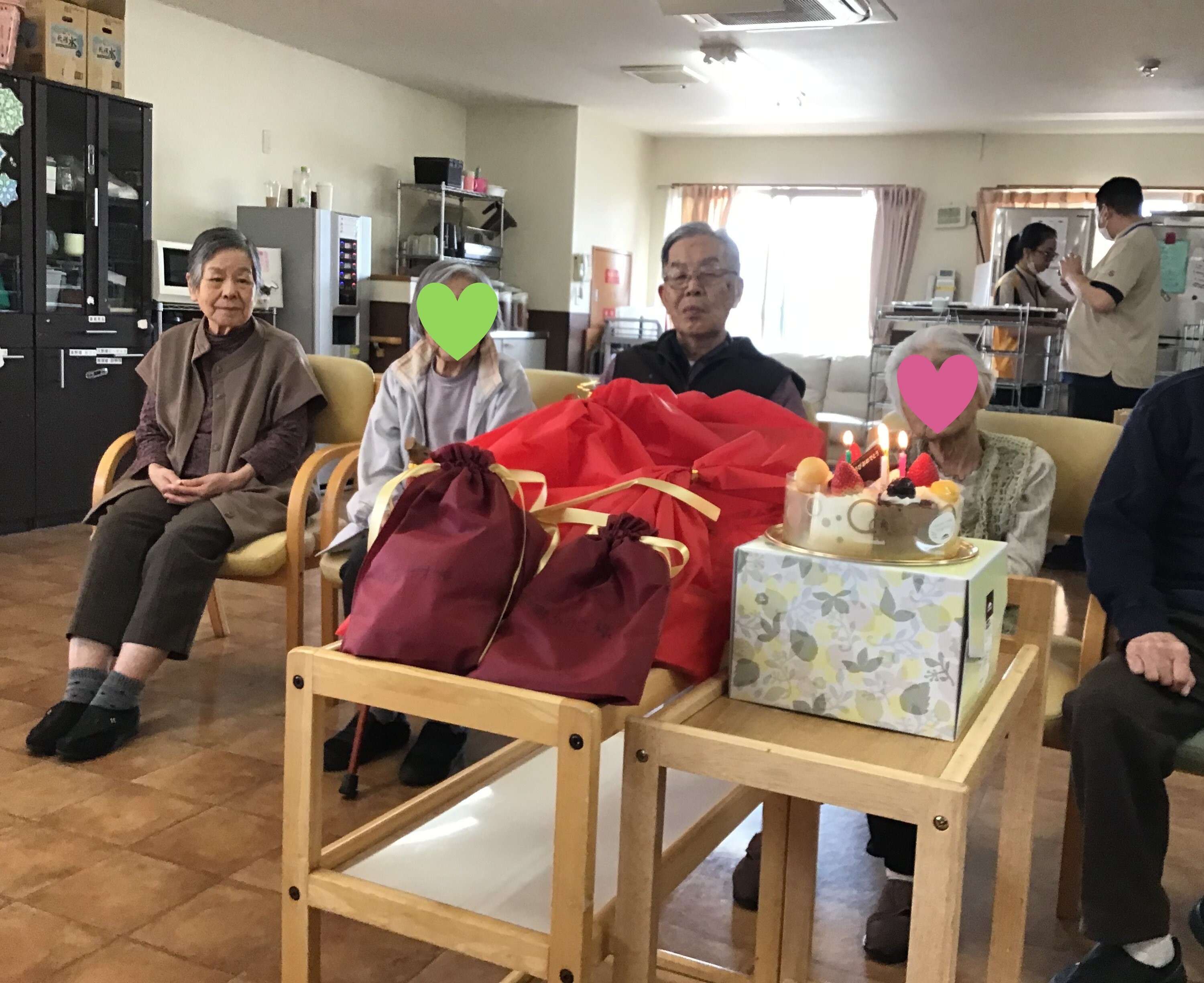 職員がお一人ずつプレゼントは何がいいか考えて用意しているので、喜んでおられる姿を見れるのは凄く嬉しい事です(≧▽≦)
