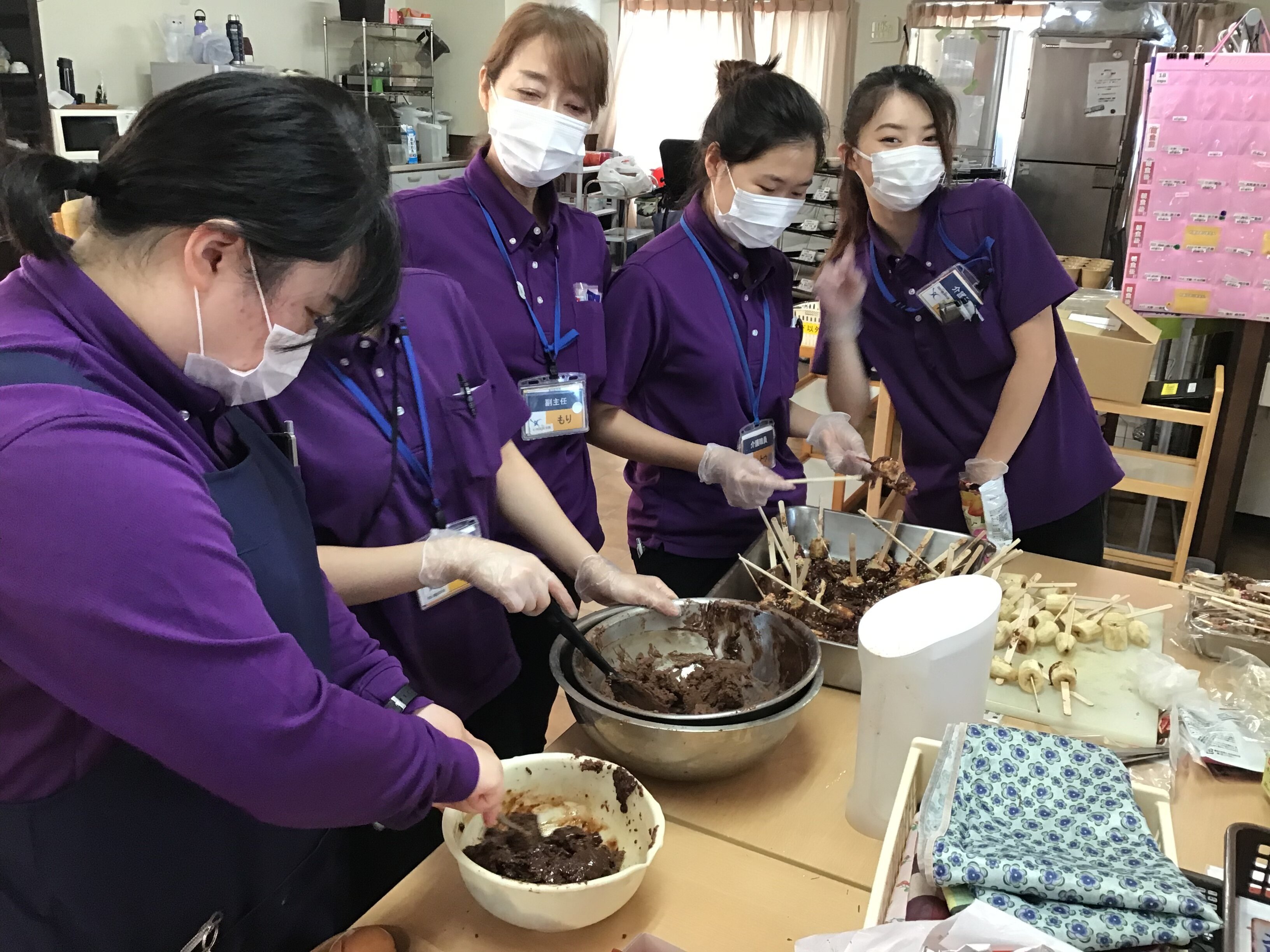 たこ焼き、餃子、バナナチョコを作っています☆