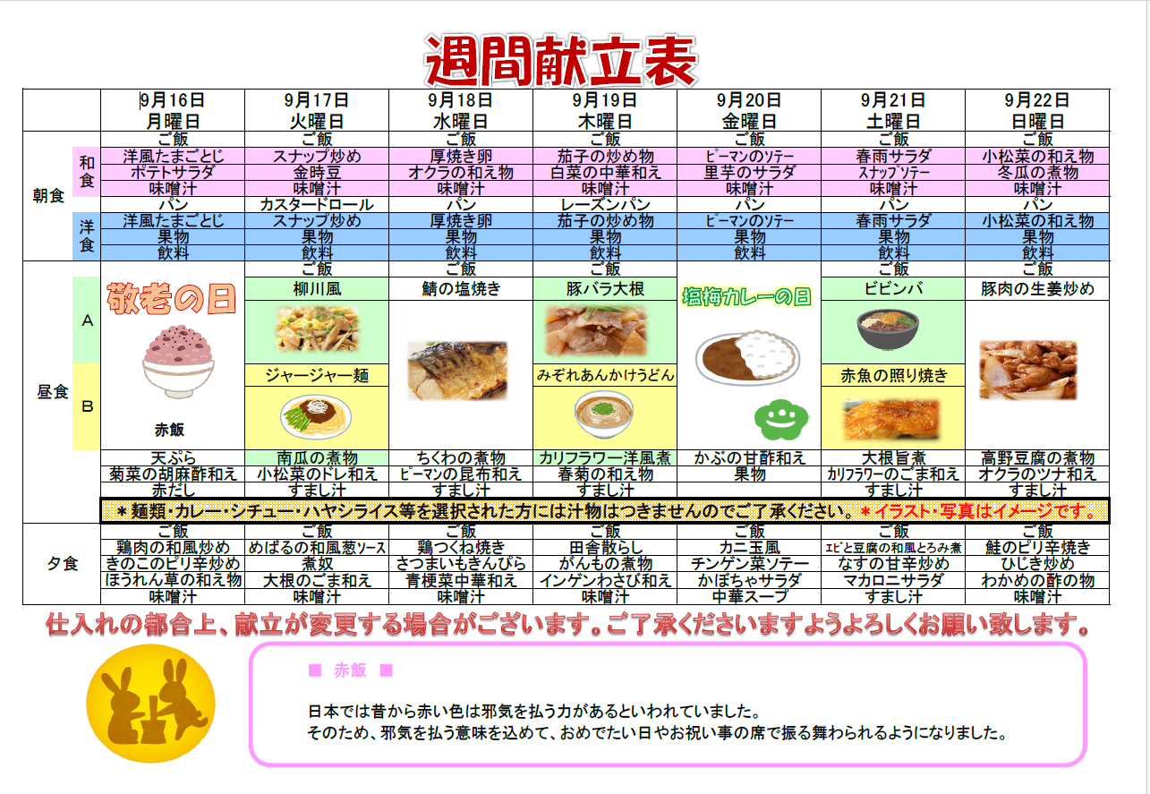 本日の目玉メニューは、敬老の日のお祝いメニューです!!