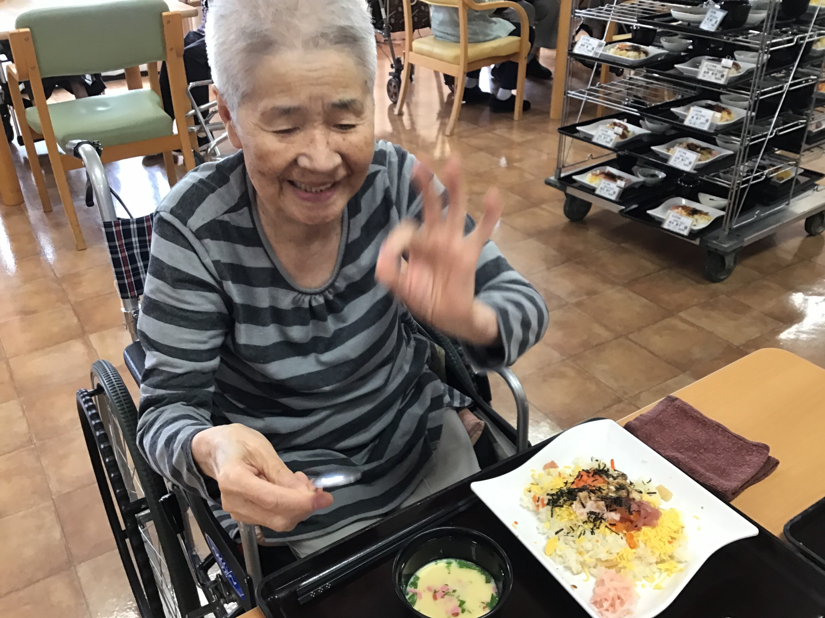 「今日の食事とても美味しかったですよ」と好評でした。(๑>◡<๑)。